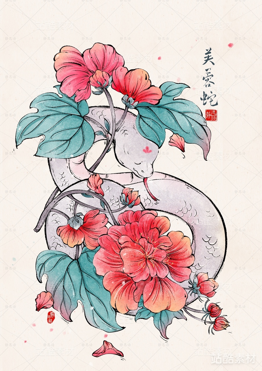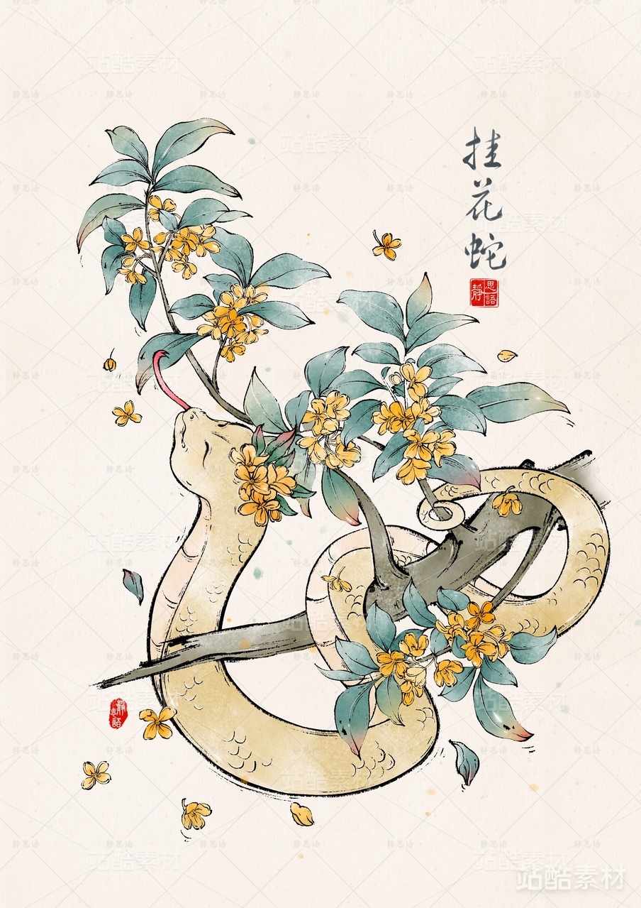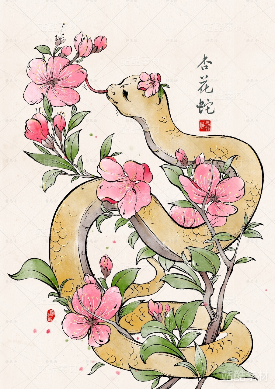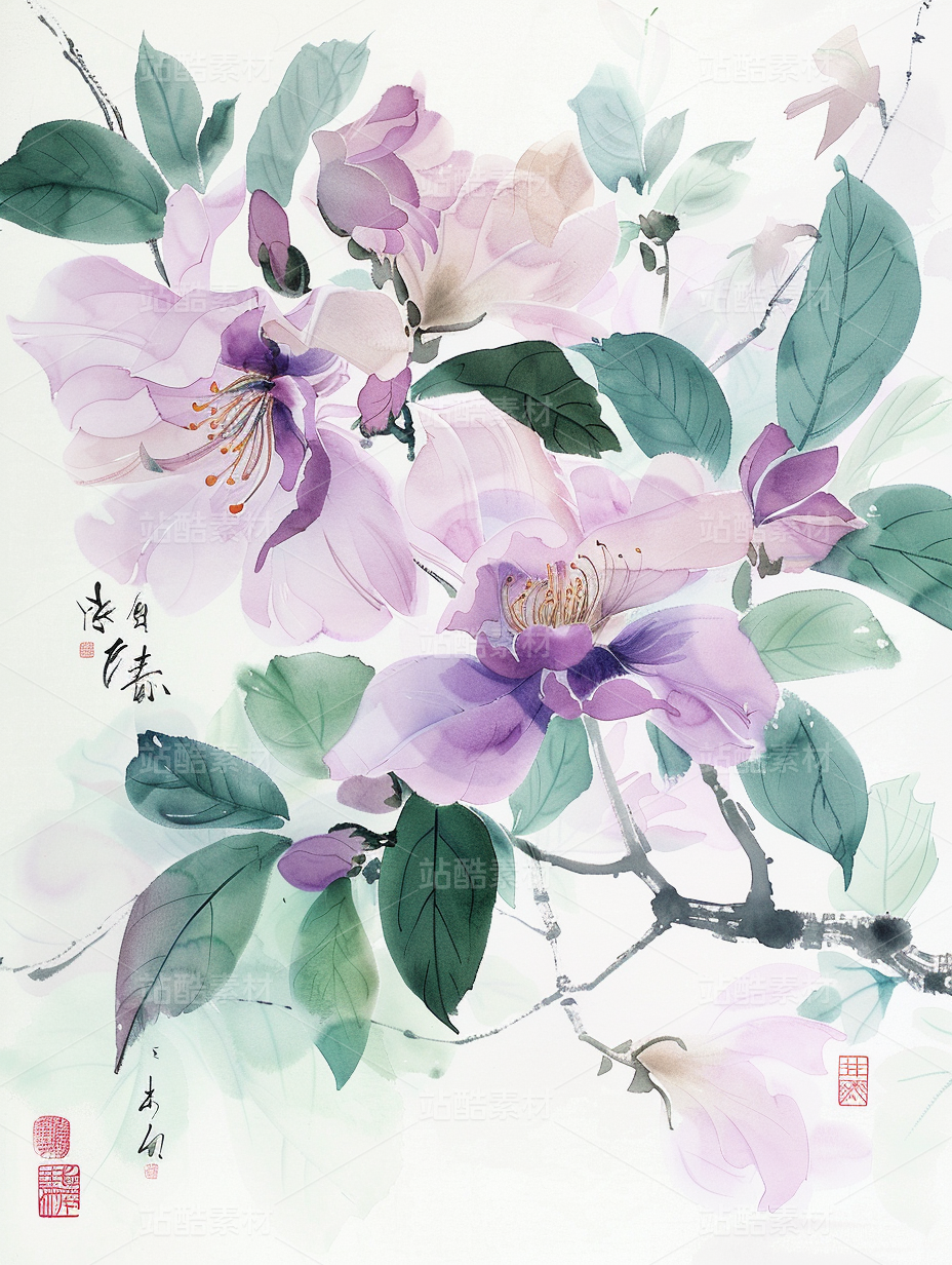 水墨中国风毛笔画国画图片素材工笔人物花鸟山水国风
