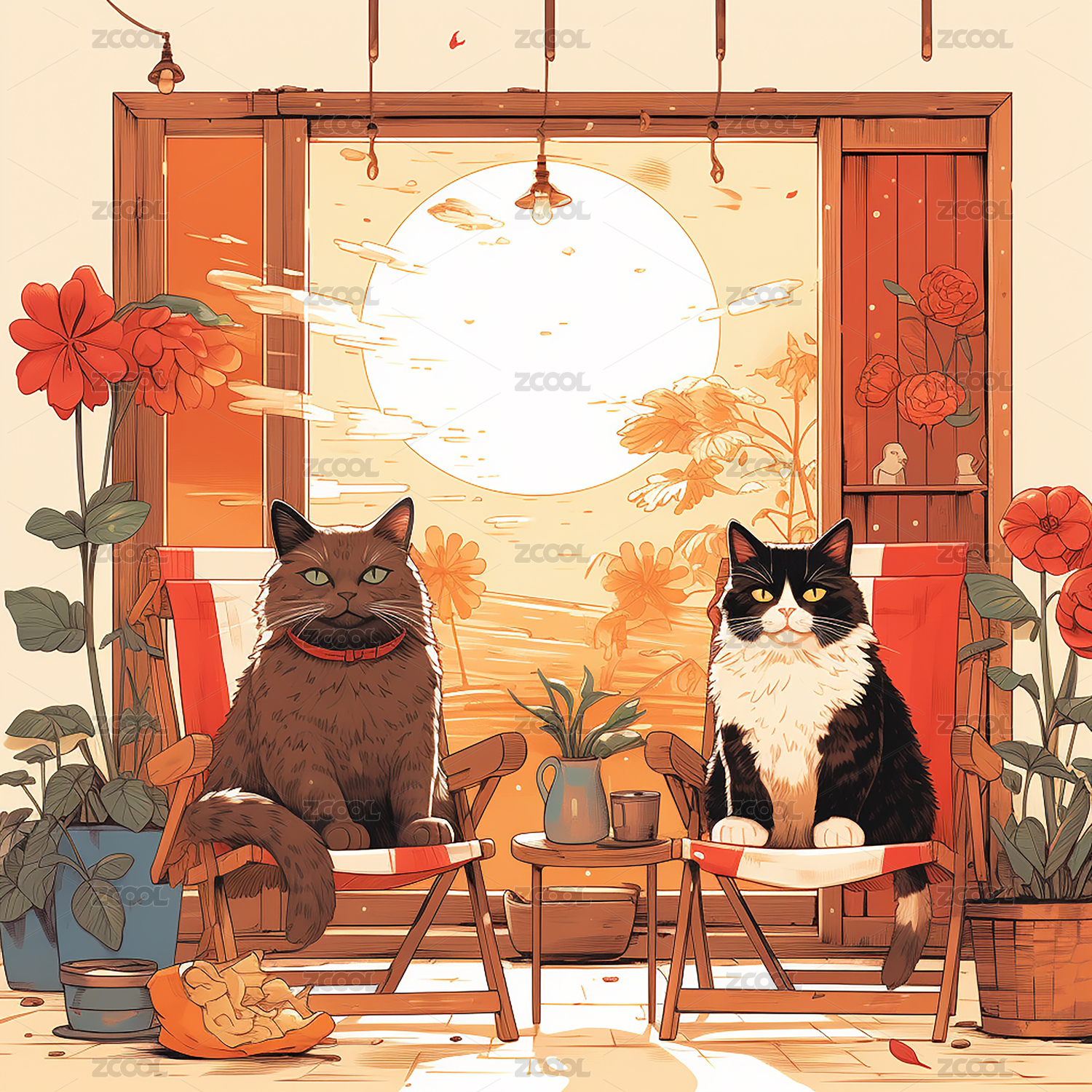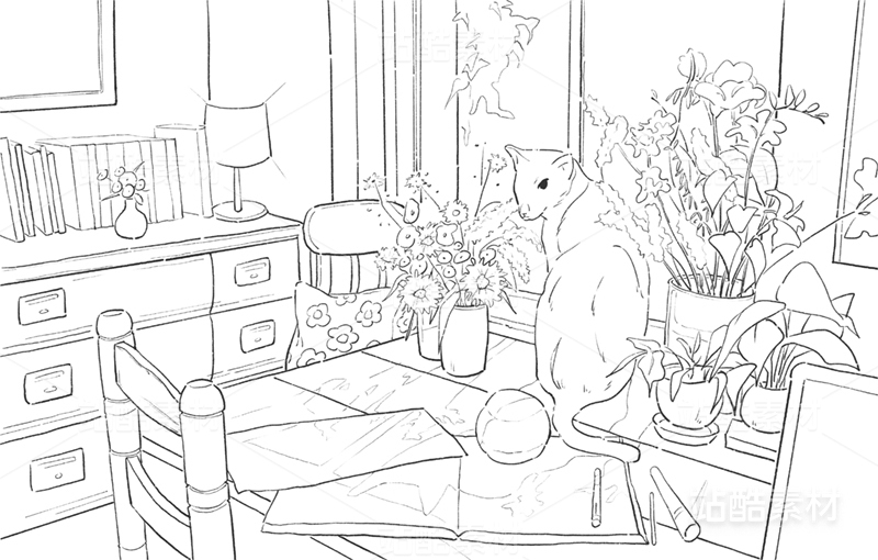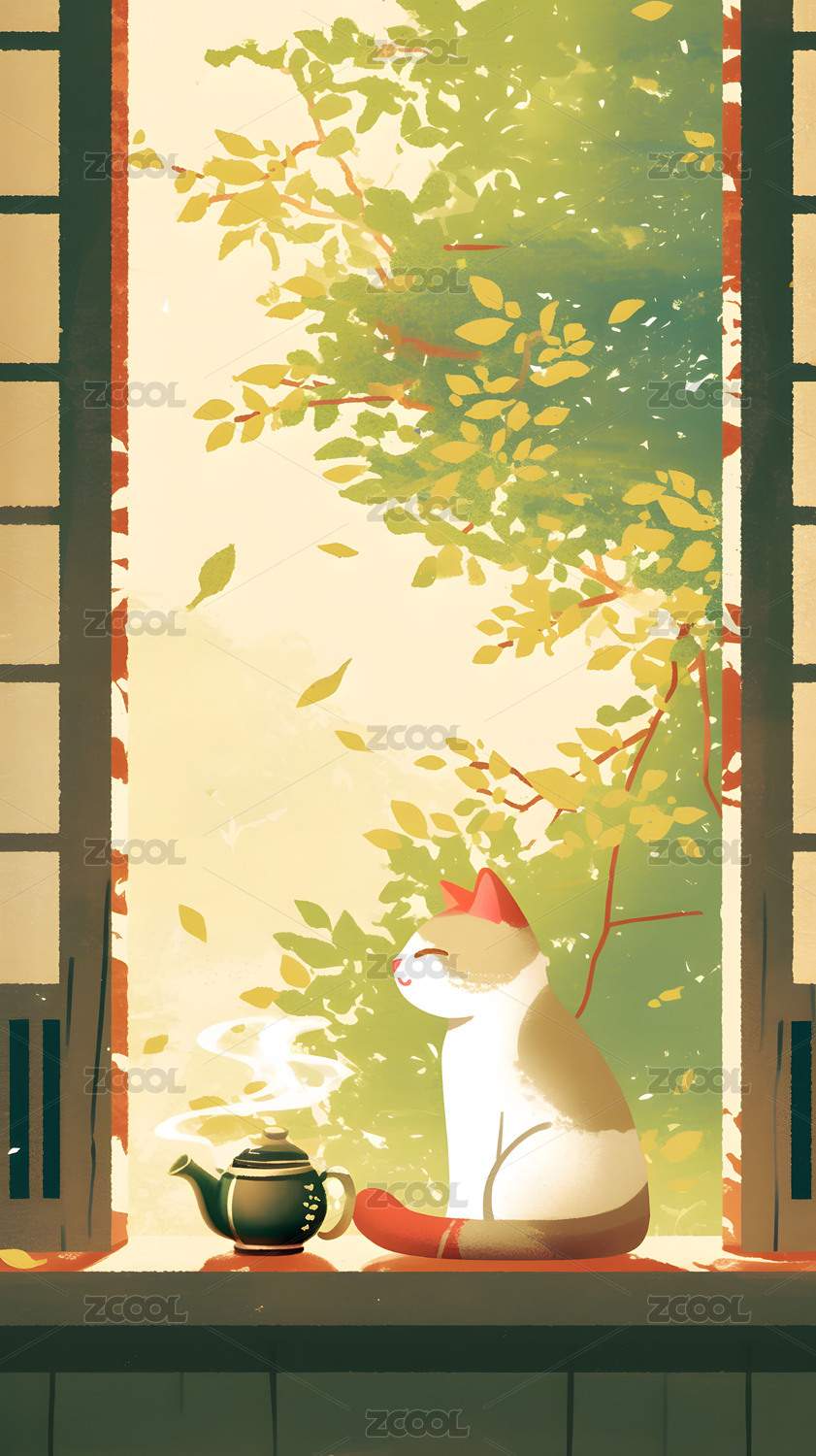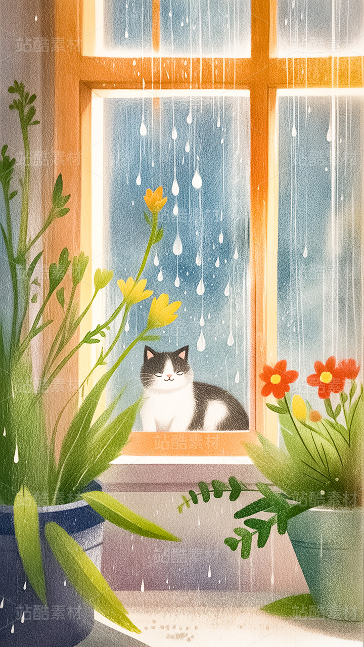 窗口的猫咪插画