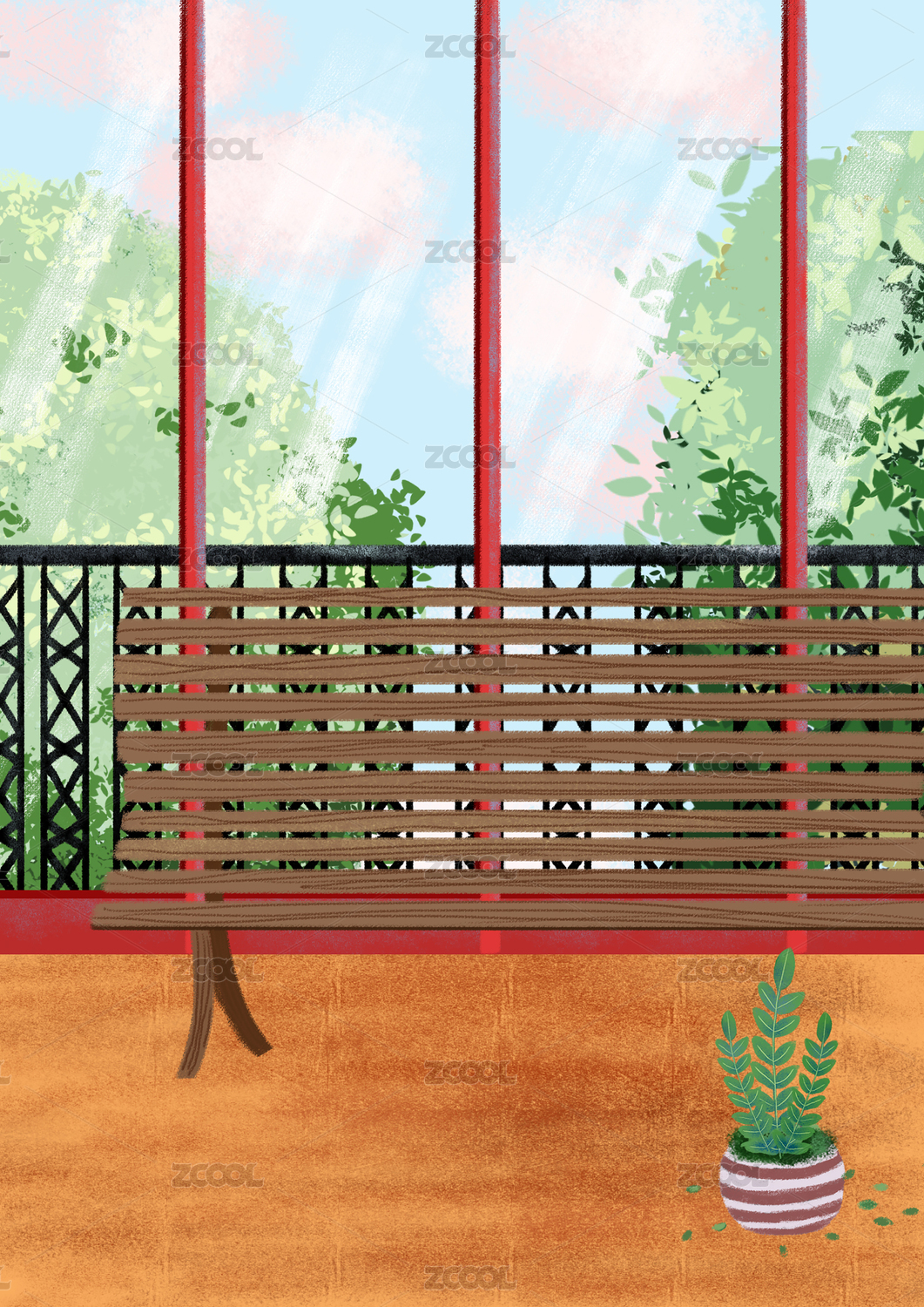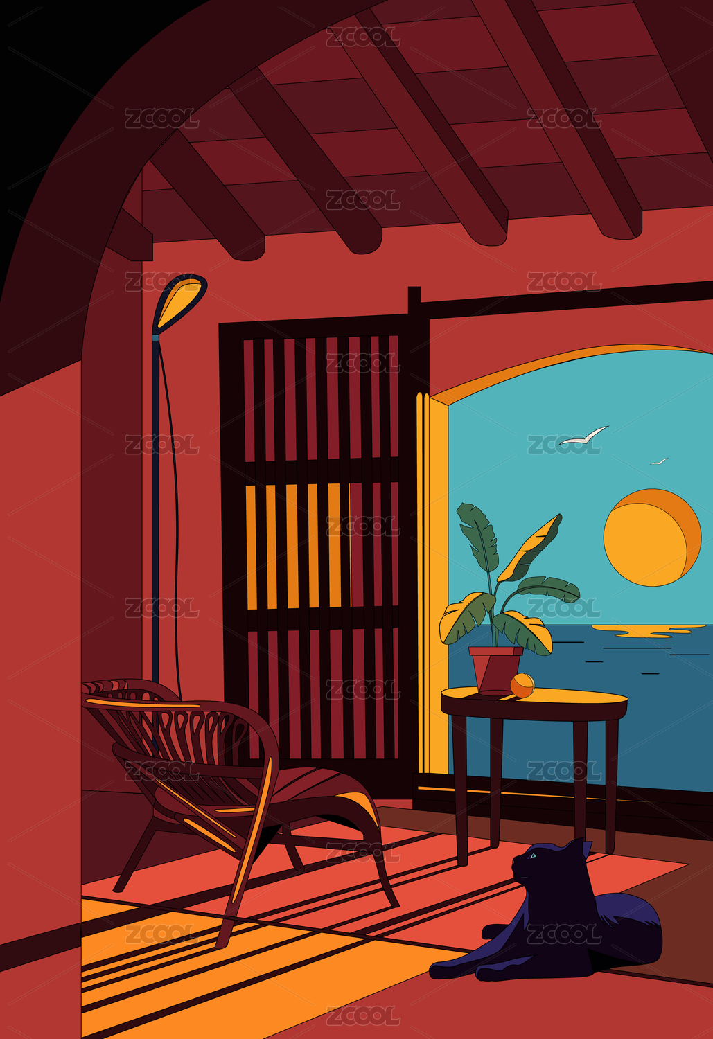 休闲海景阳台插画