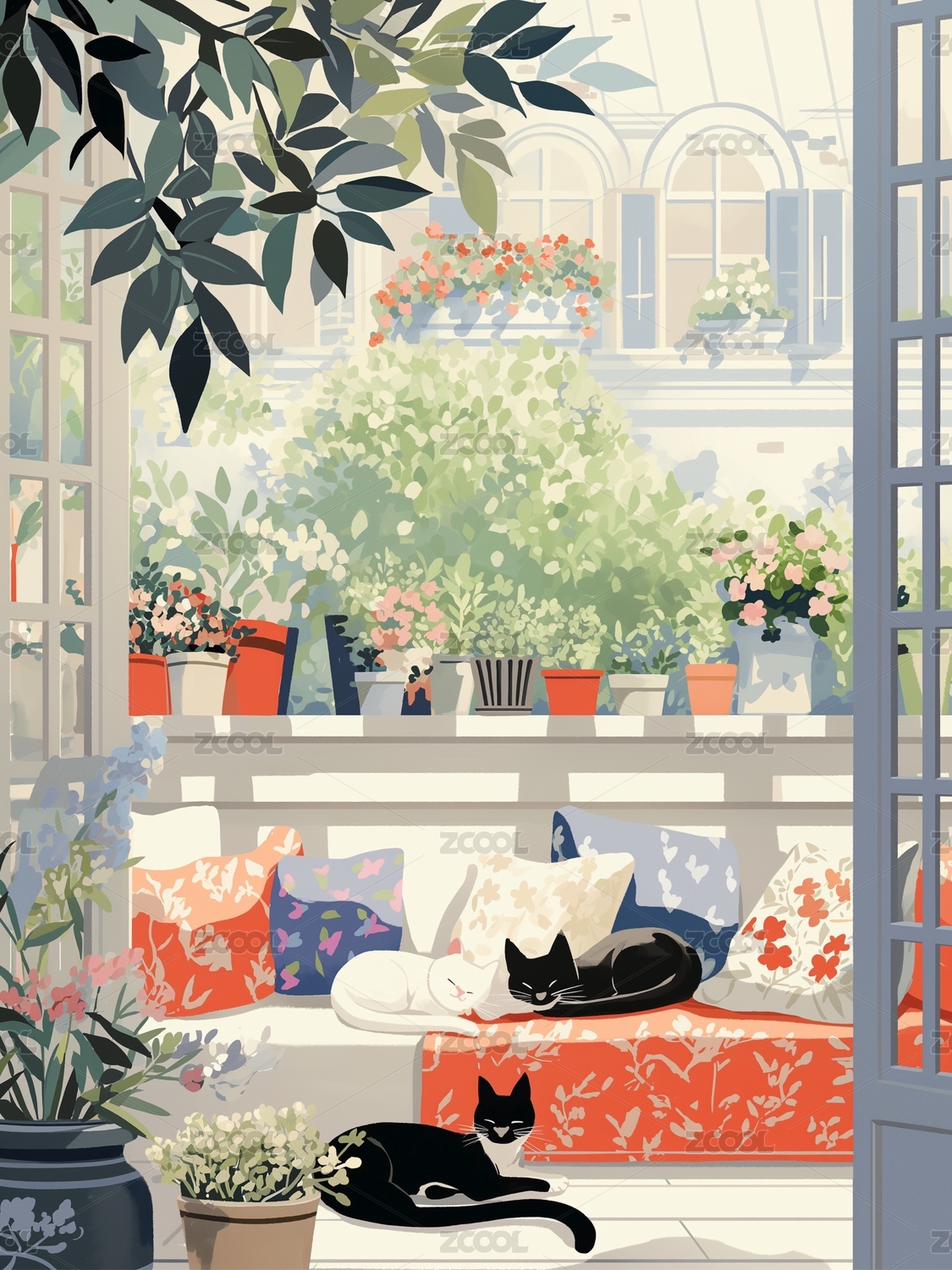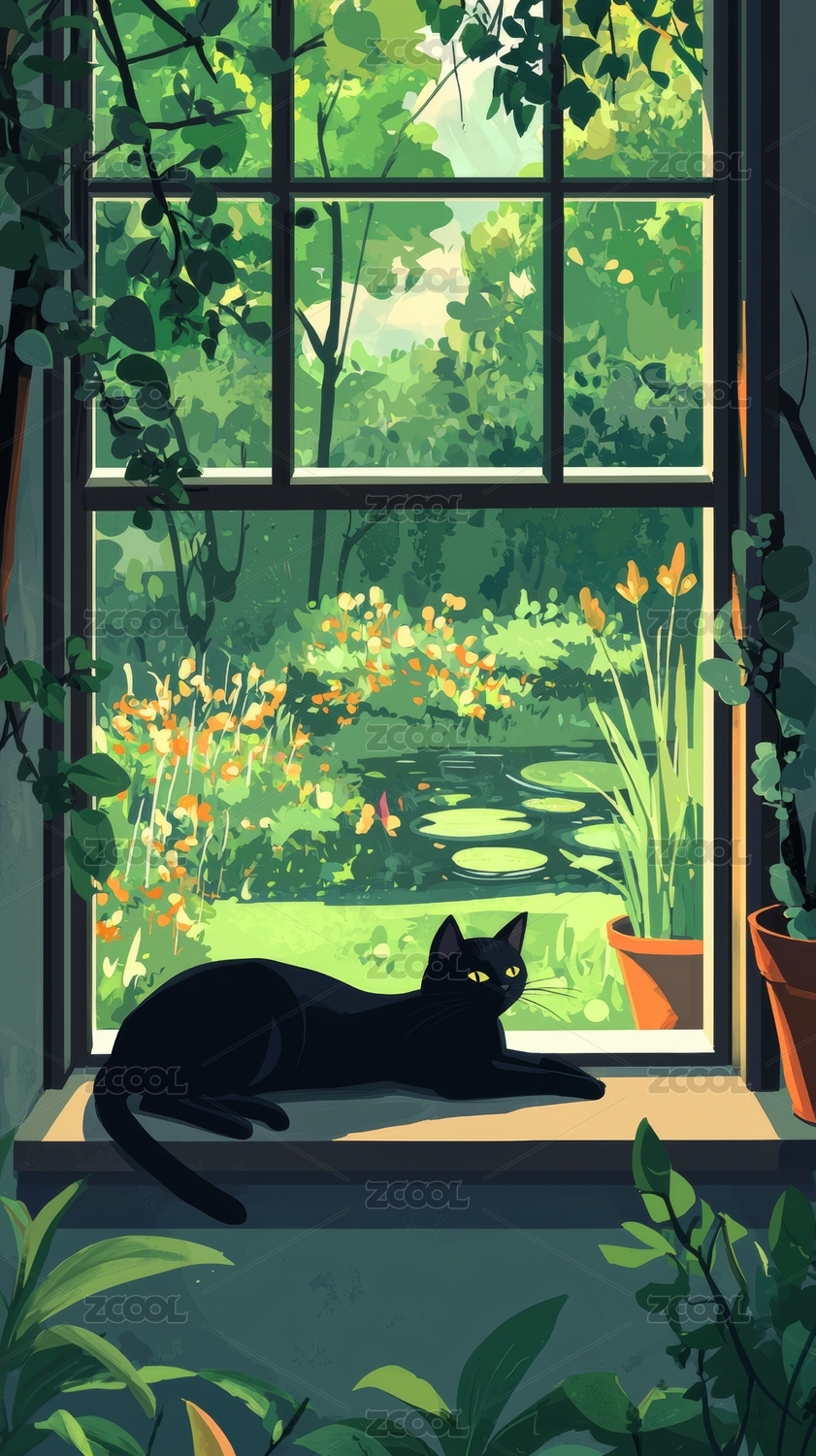 窗户前的猫猫插画
