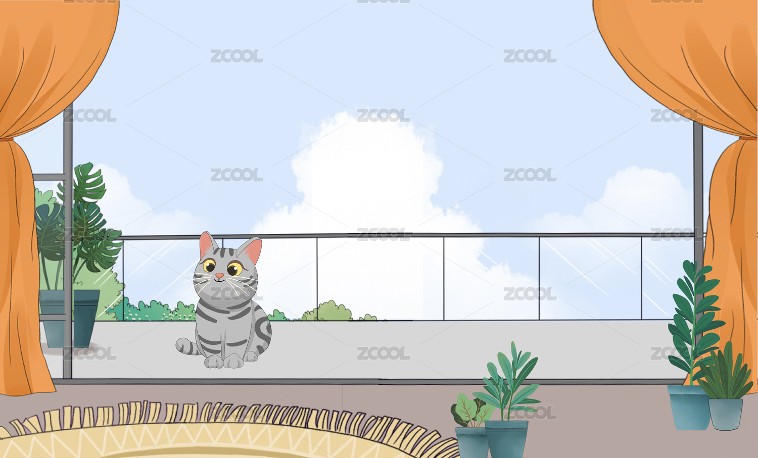 窗前小猫卡通插画