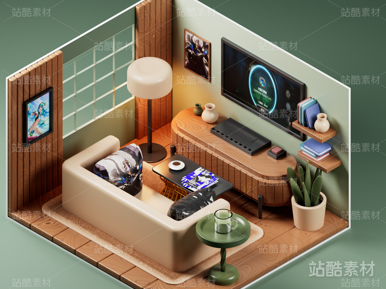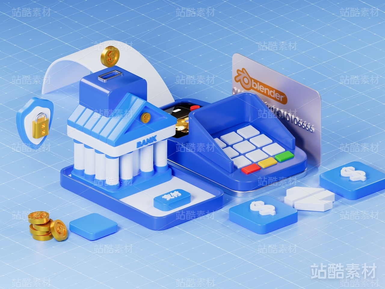 等距场景、3D、Blender、