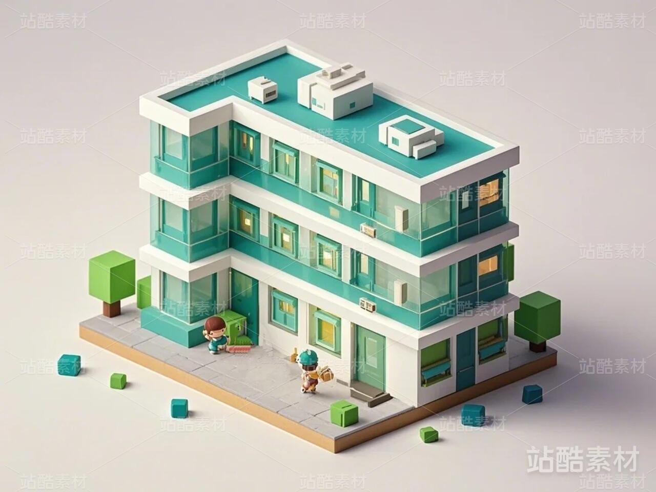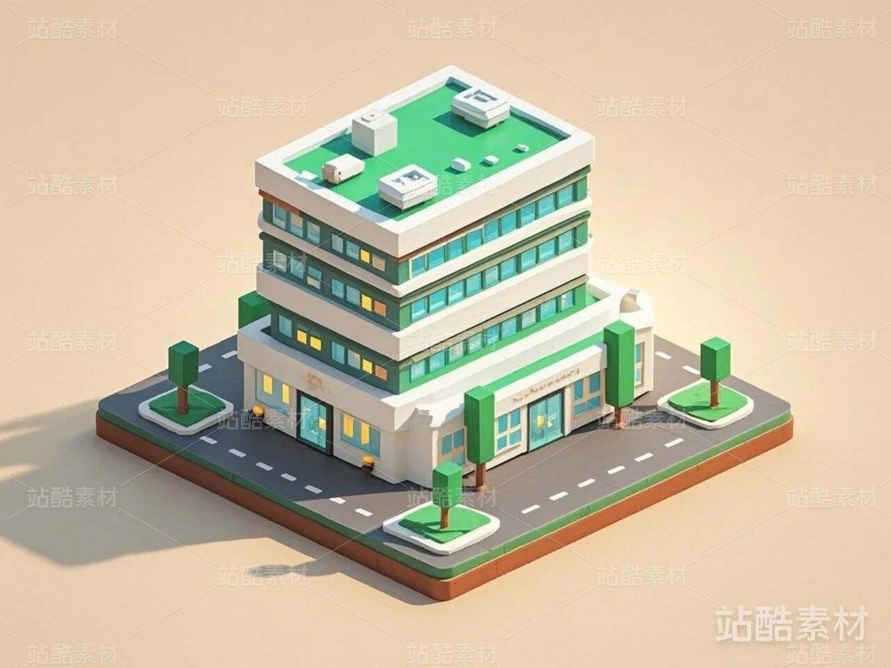 黏土风办公楼景物