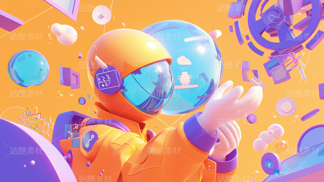 彩色3D卡通人物科技科幻