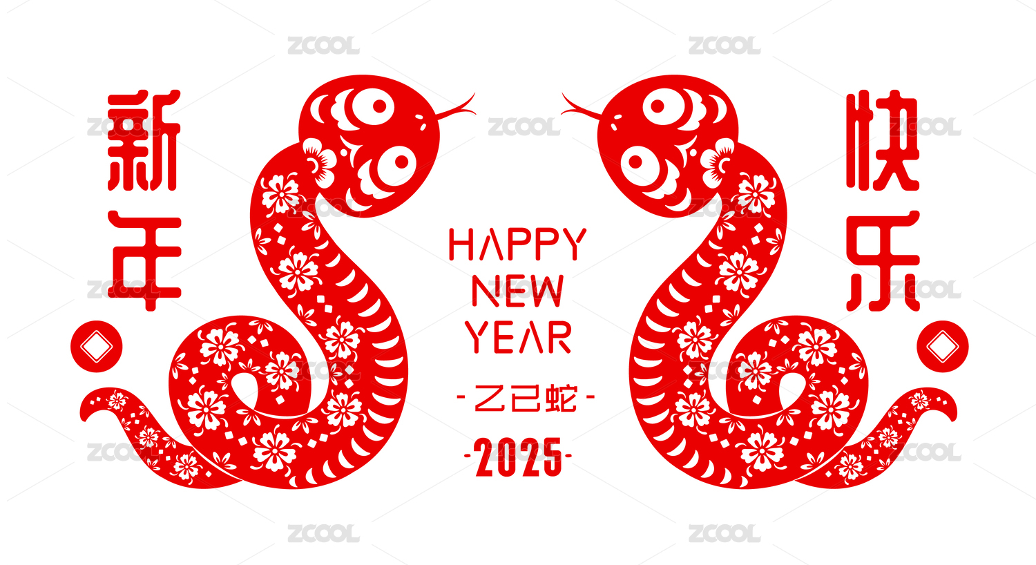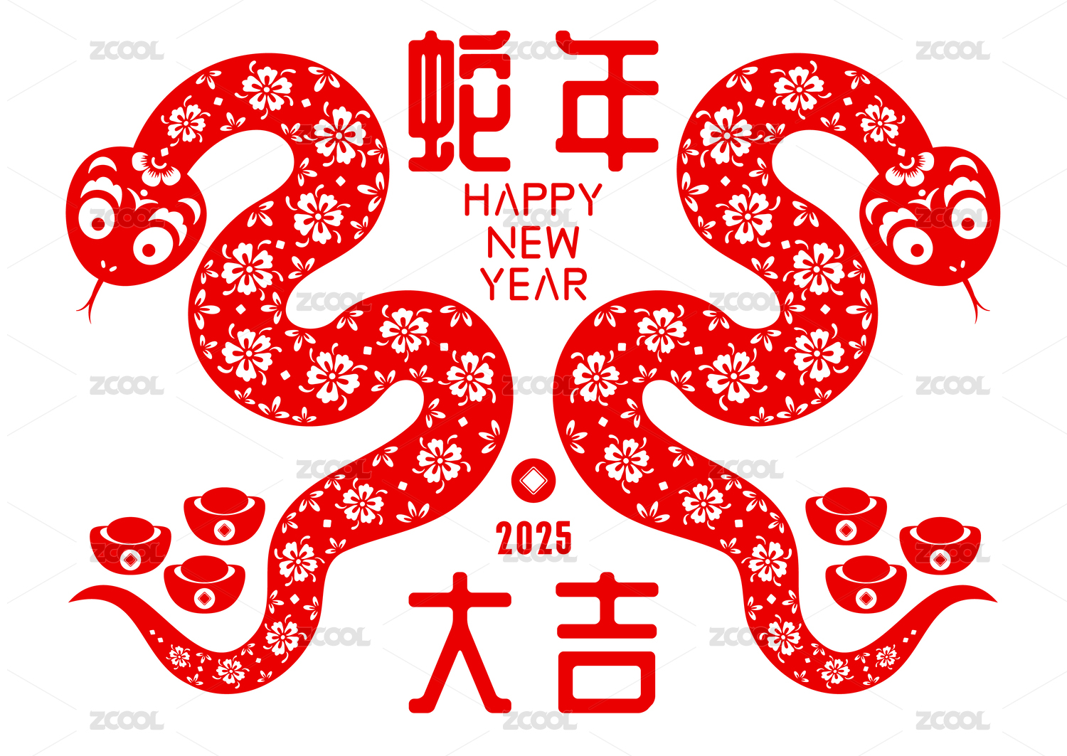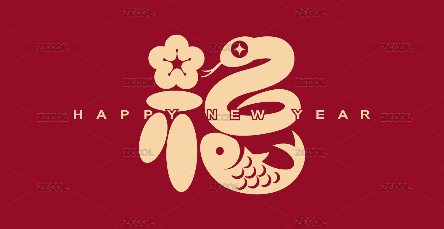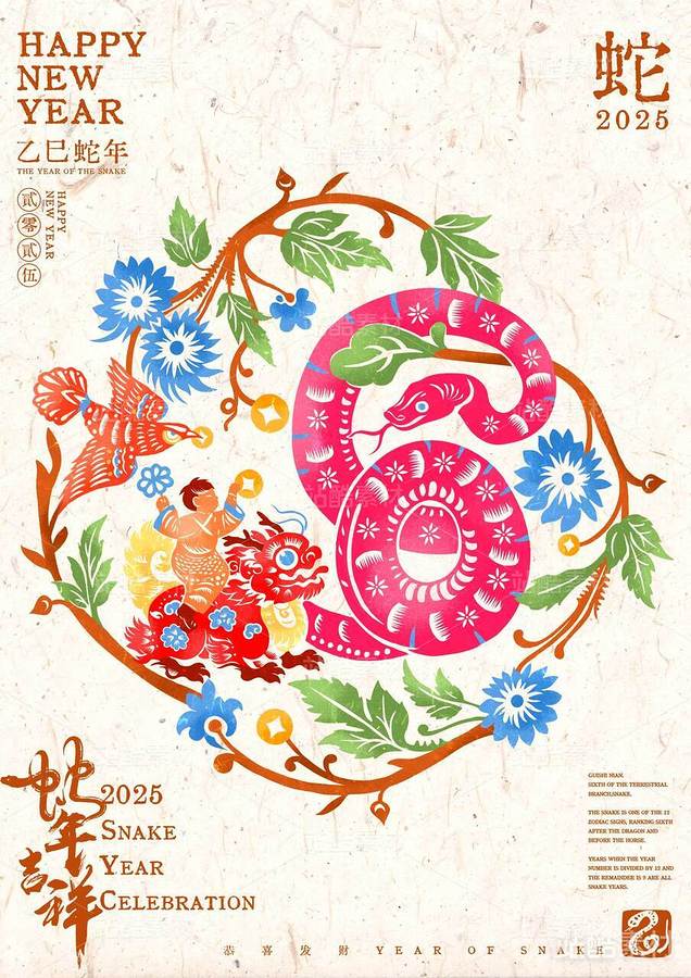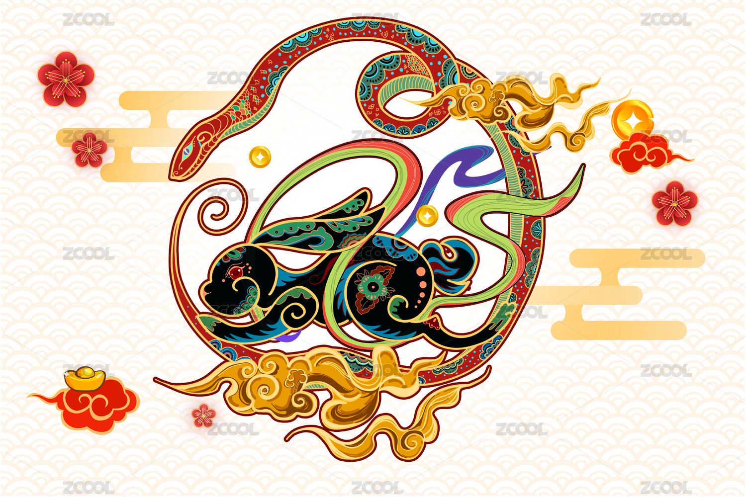 喜庆的复古风格五彩斑斓的蛇和花朵