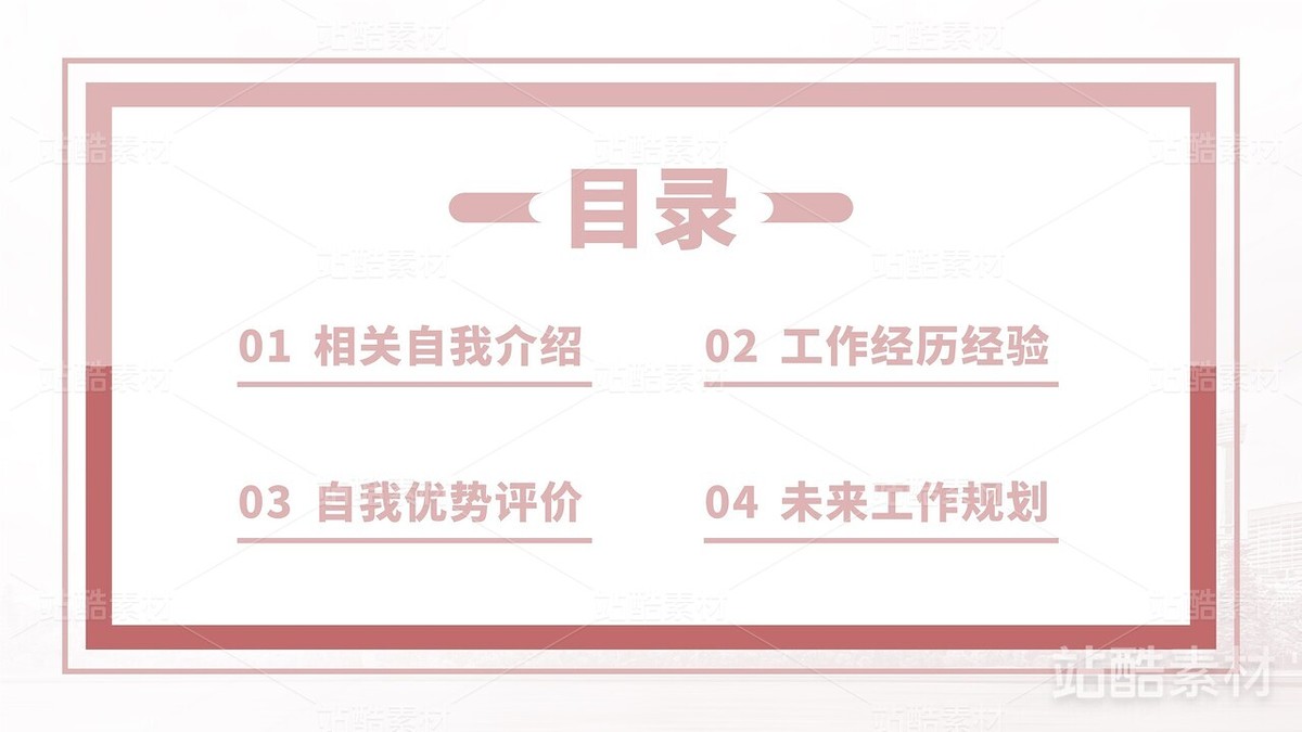 【陈西】【站酷素材】淡粉色自我介绍个人简历企业求职面试岗位应聘竞聘找工作述职汇报PPT模