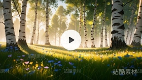 5部白桦林背景素材视频,丁达尔效应,草地,
