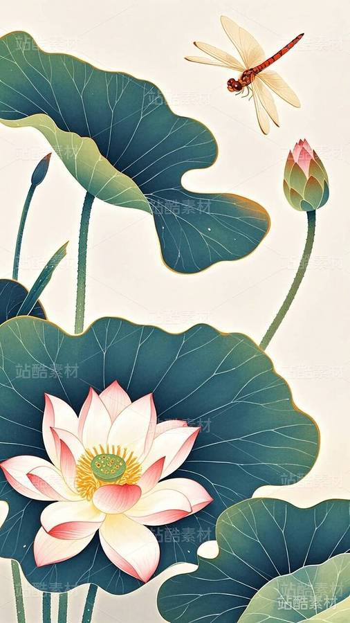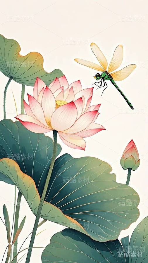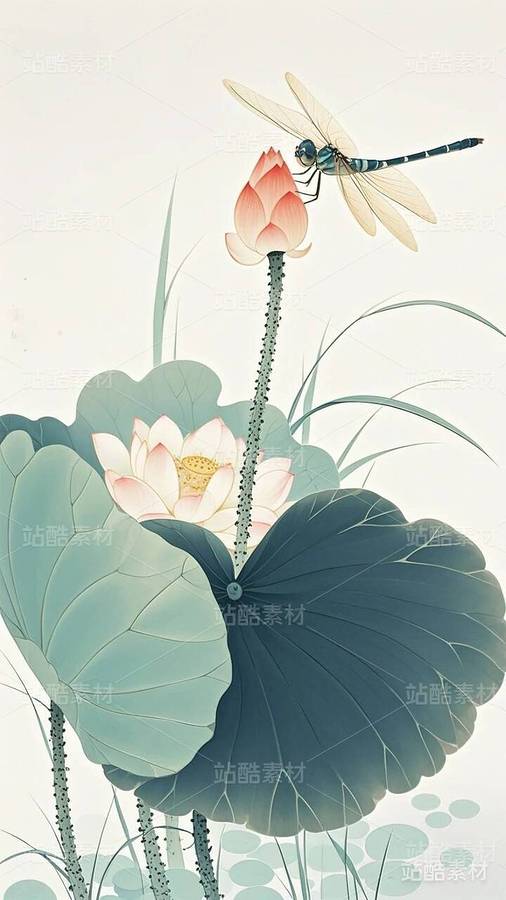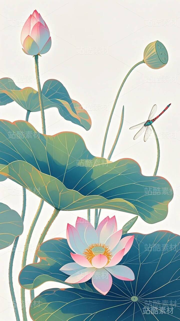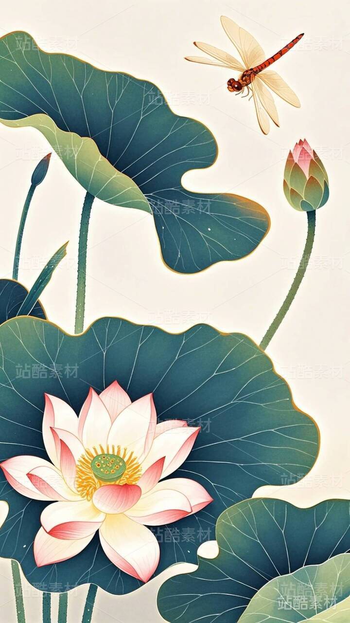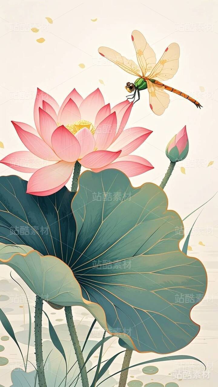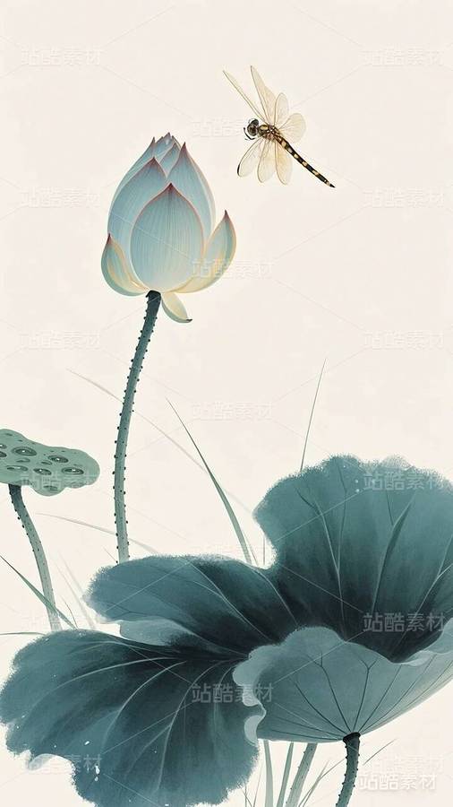 20张国潮,国漫,水墨画,荷花,莲花