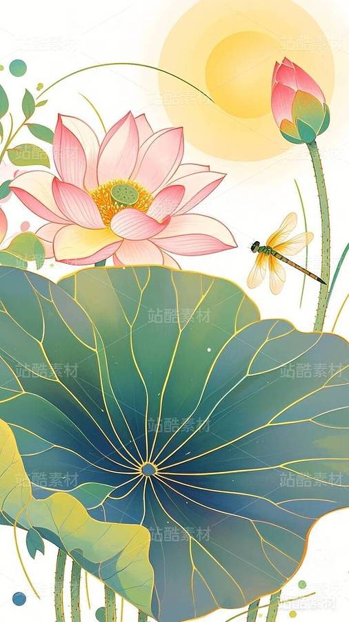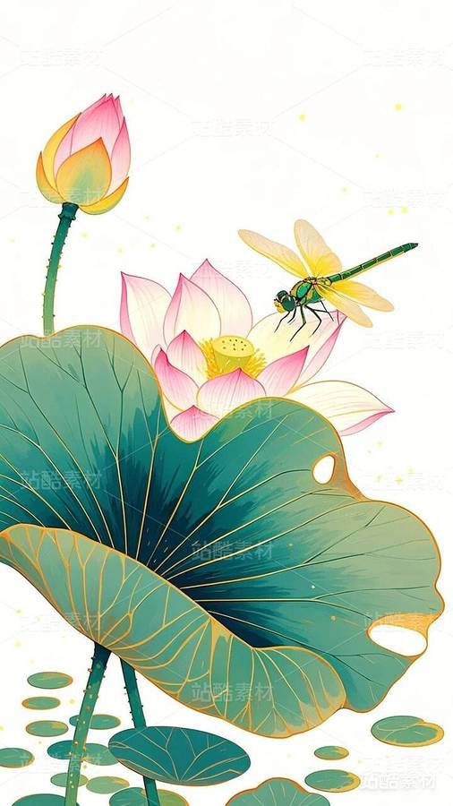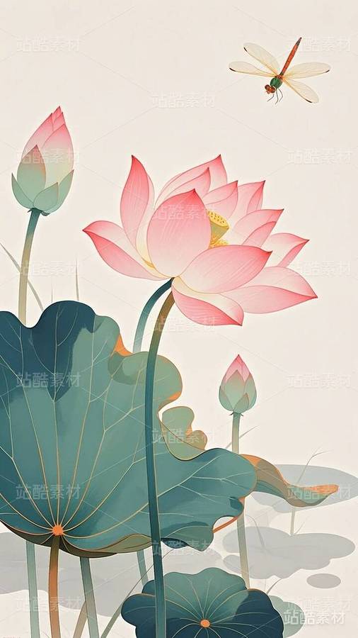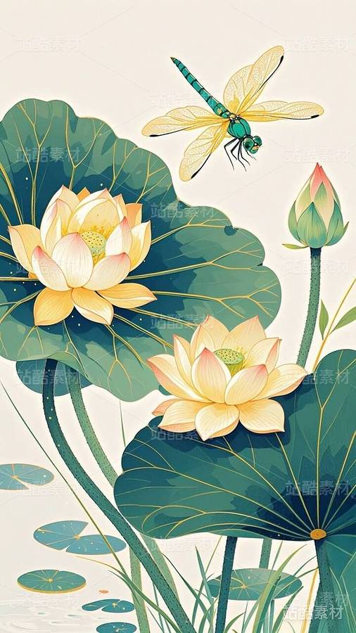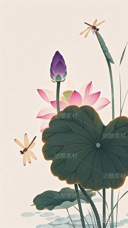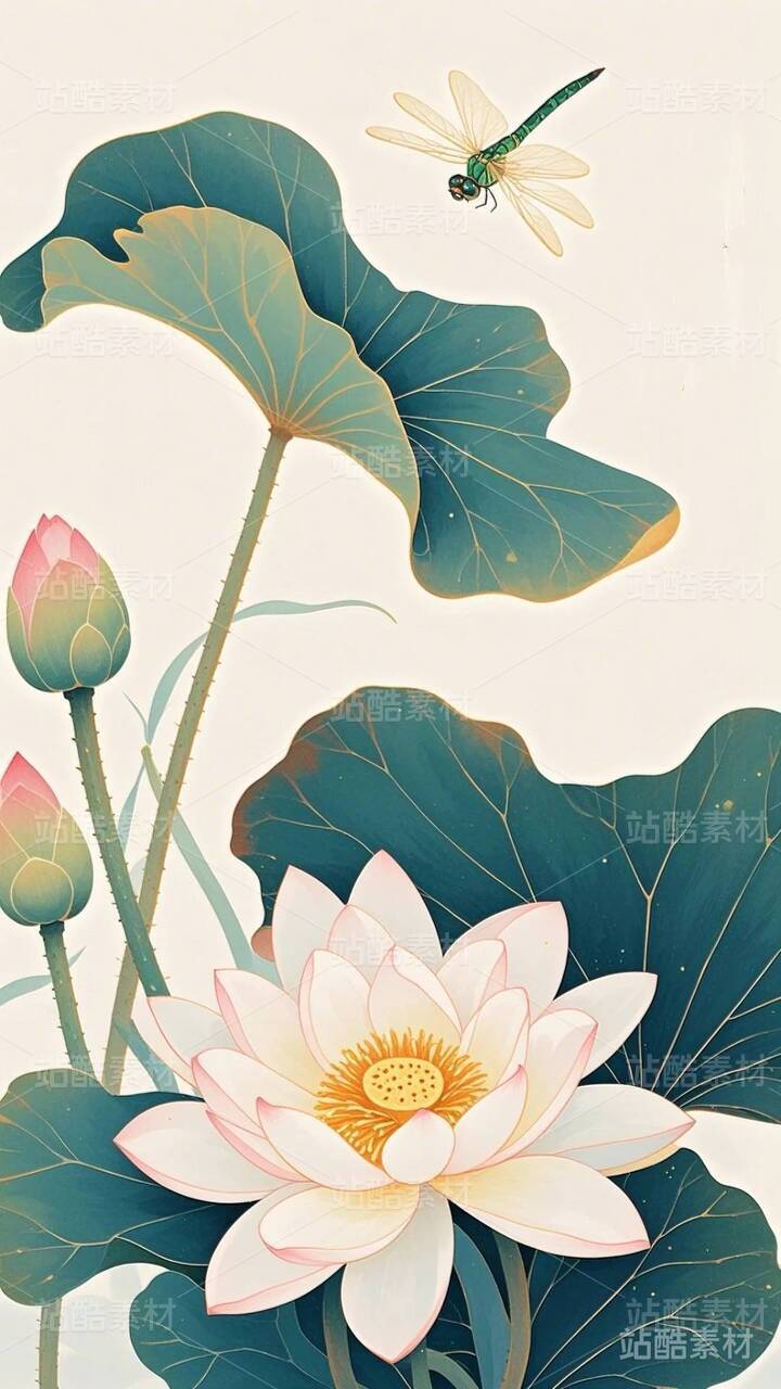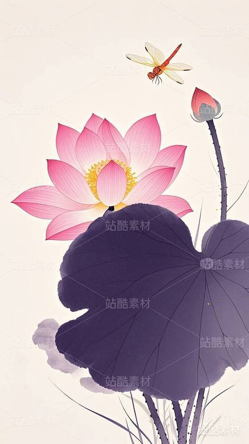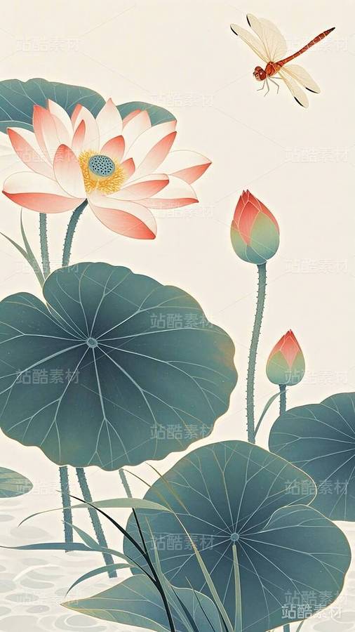 20张国潮,国漫,水墨画,荷花,莲花