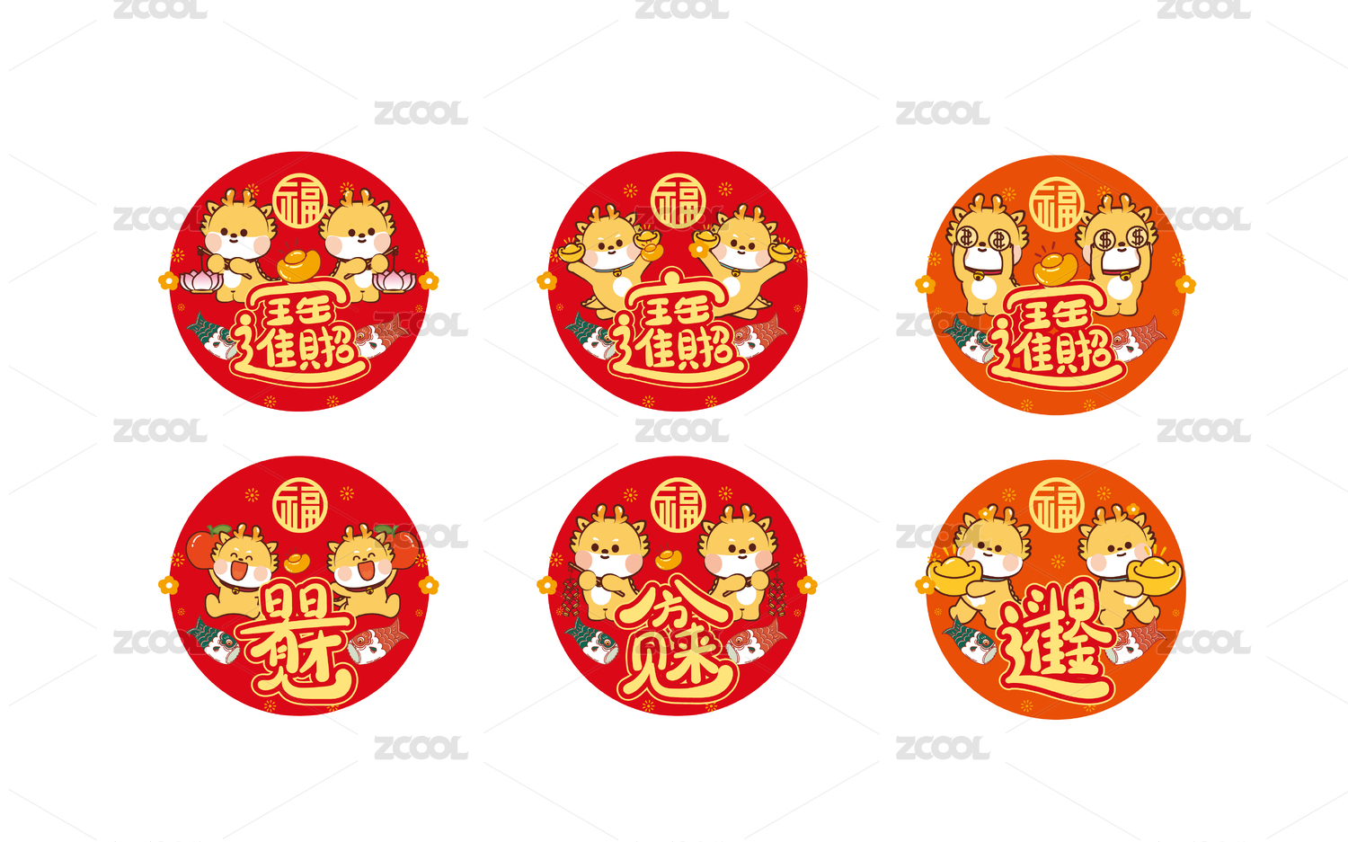 春节潮流元素矢量插画吉庆贴纸福袋红包