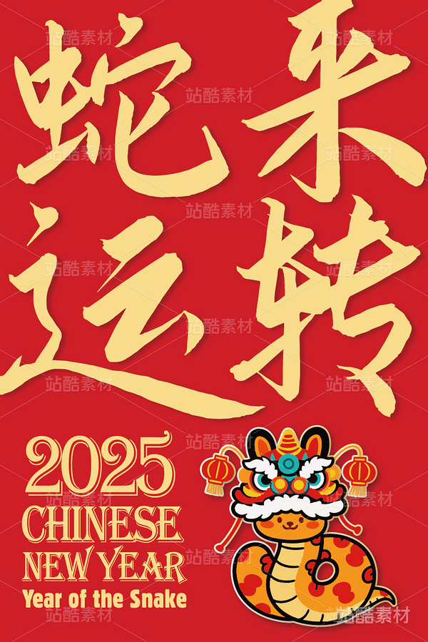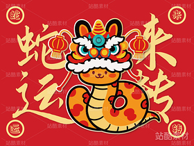 蛇年的原创卡通形象:蛇来运转蛇年卡