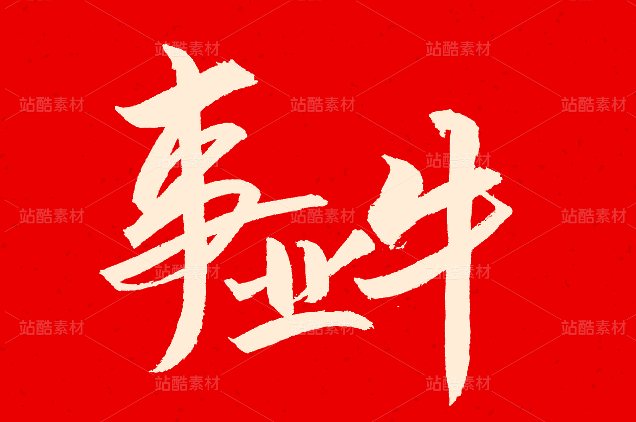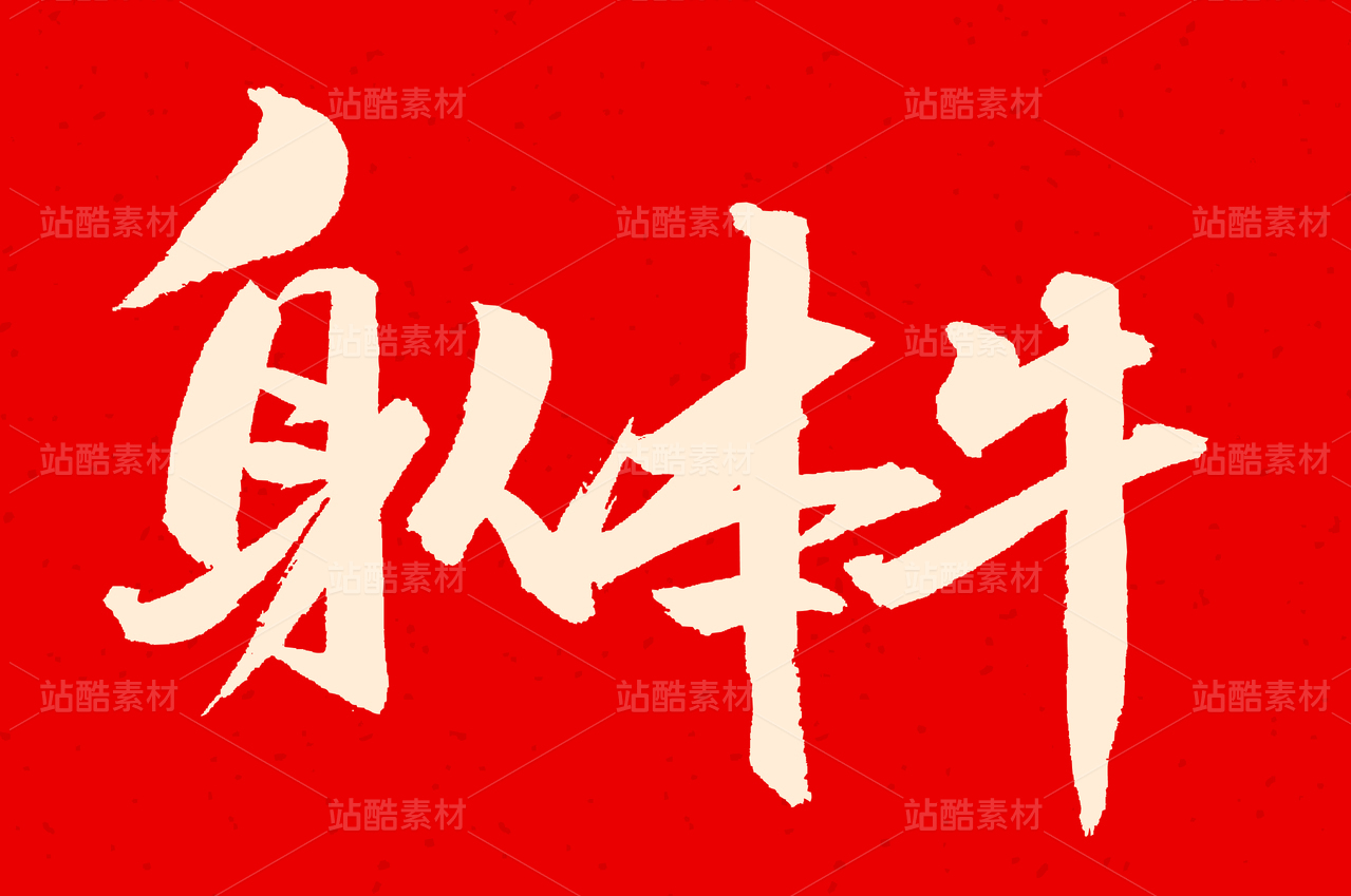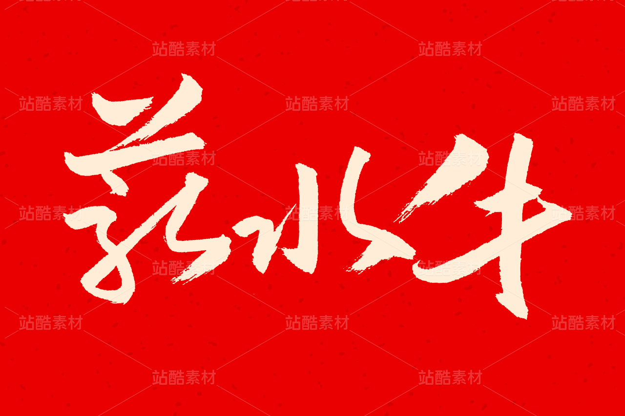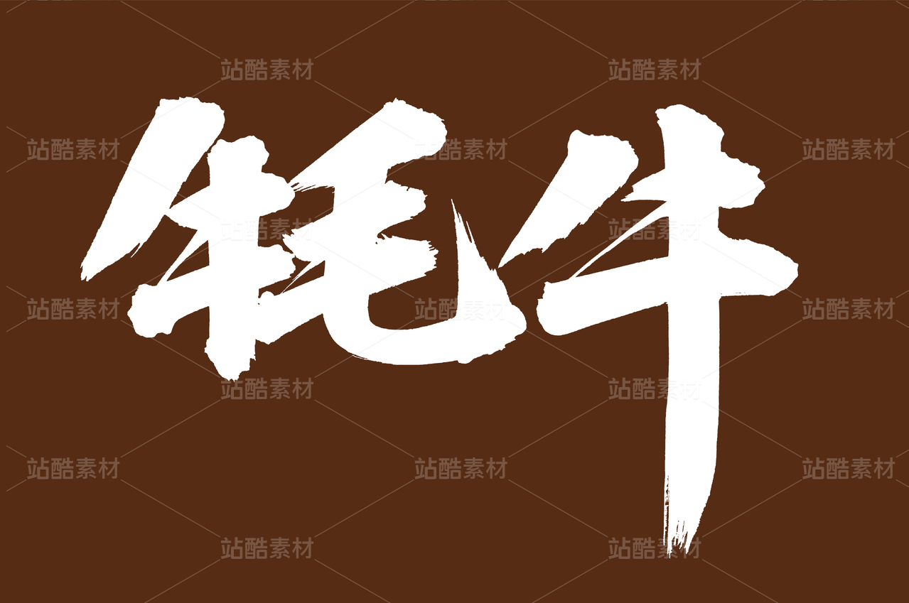 矢量中国和牛手书毛笔字体字形设计