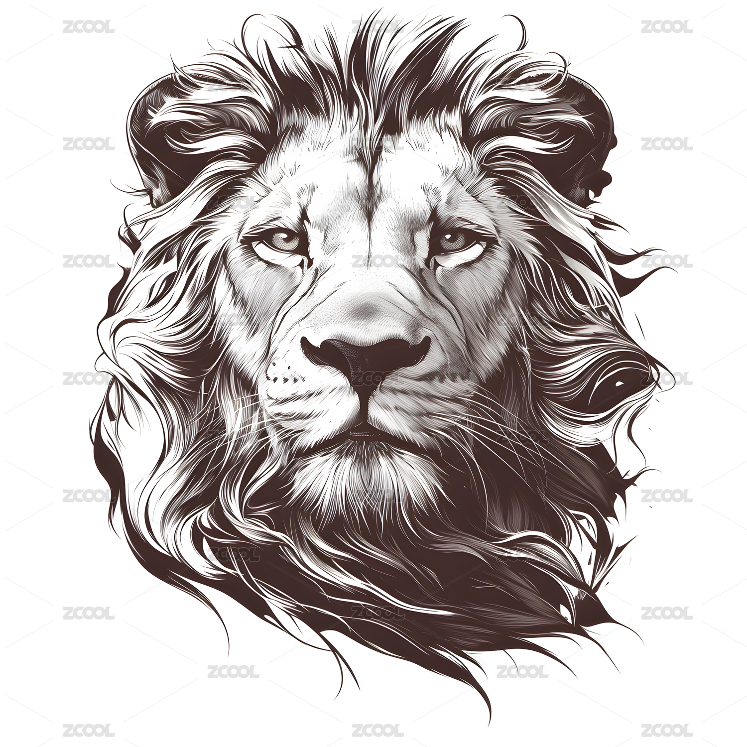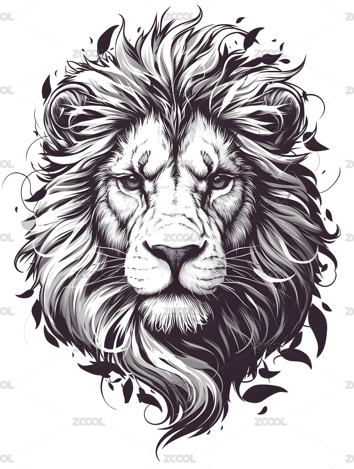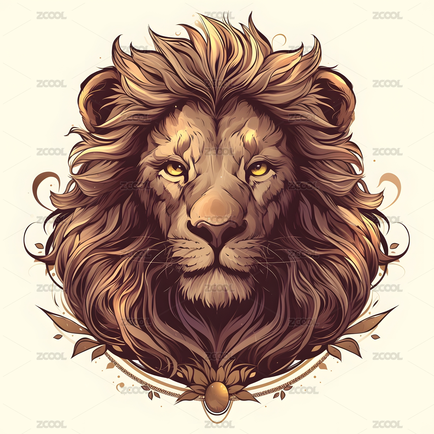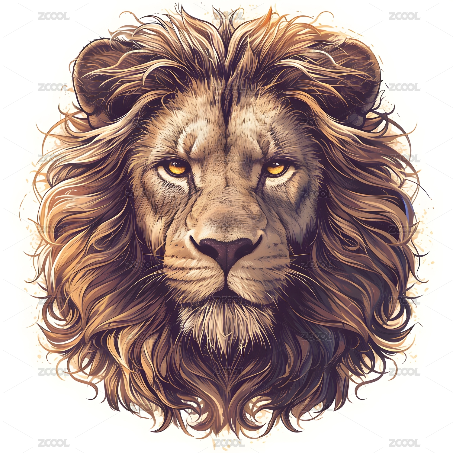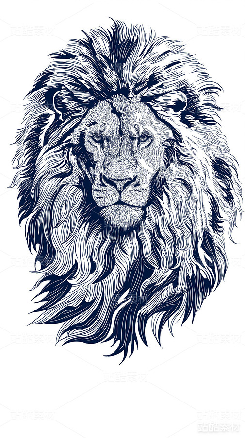 复古手绘风格狮子头部头像兽王印花图案插画