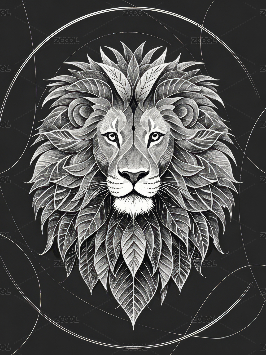抽象线条雄狮图腾艺术插画背景