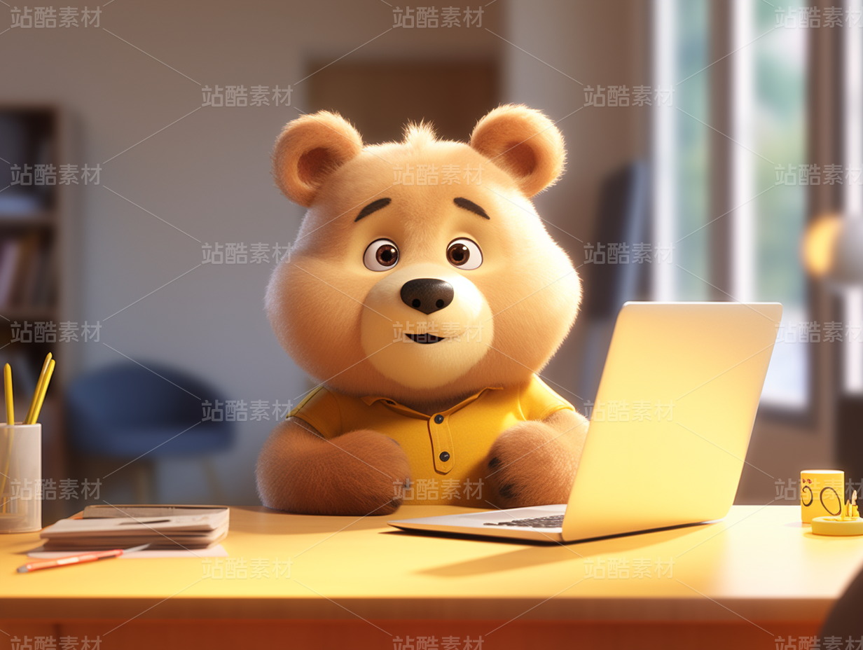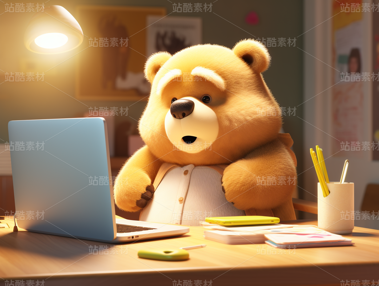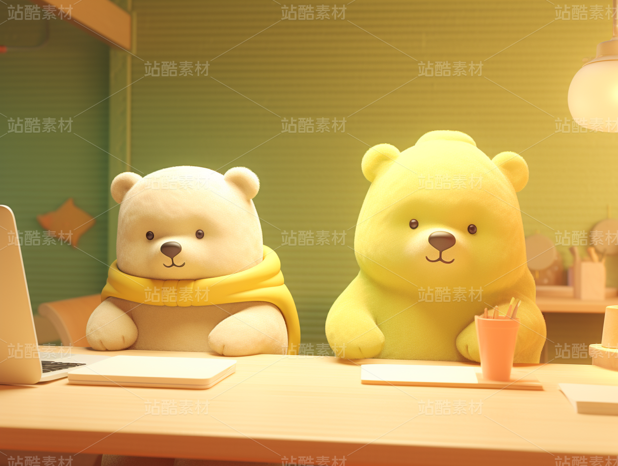 3D卡通毛绒绒可爱熊熊办公室加班温暖同事
