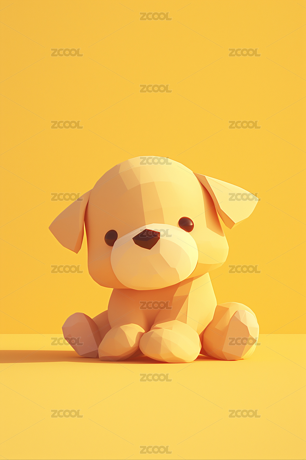 低面多边形糖果色萌宠狗玩具3D卡通插画