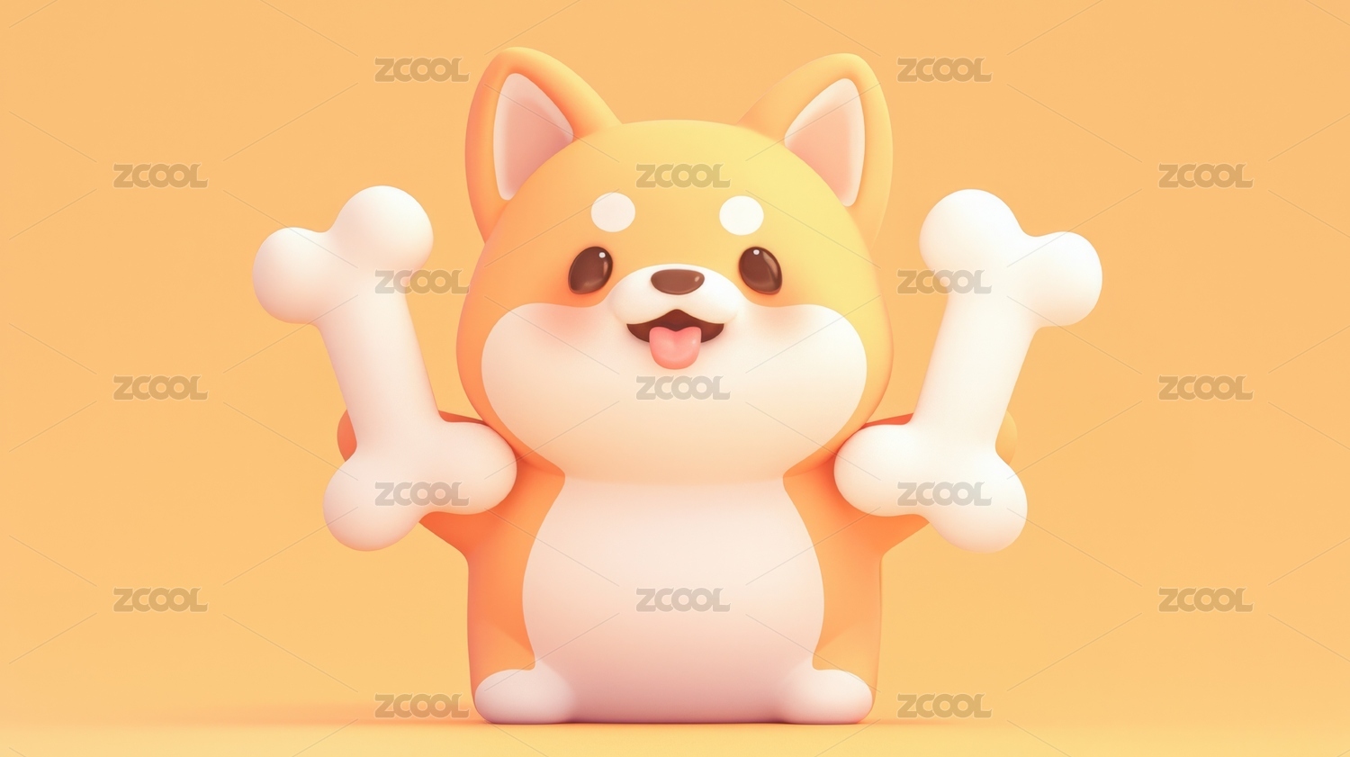 卡通柴犬拿着骨头