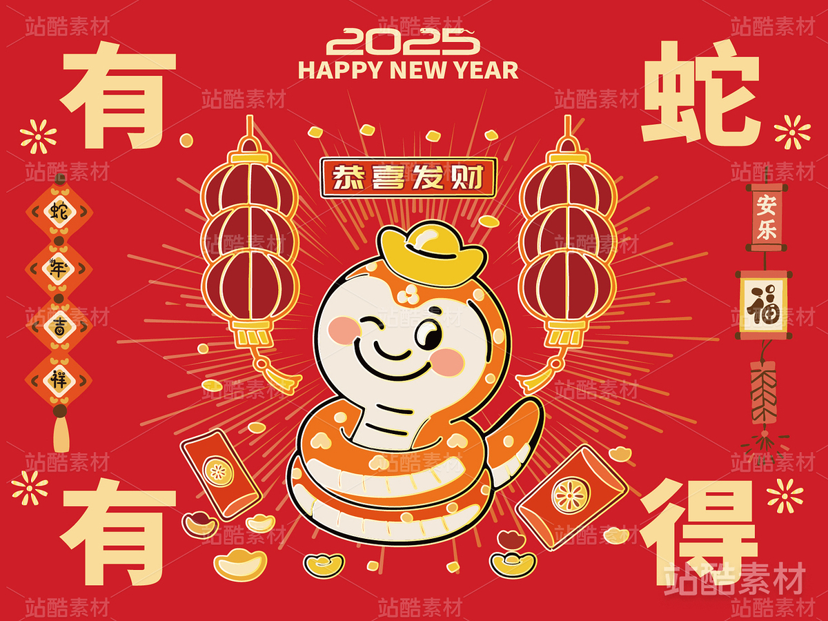 蛇年金蛇迎春·蛇卡通新年吉祥物