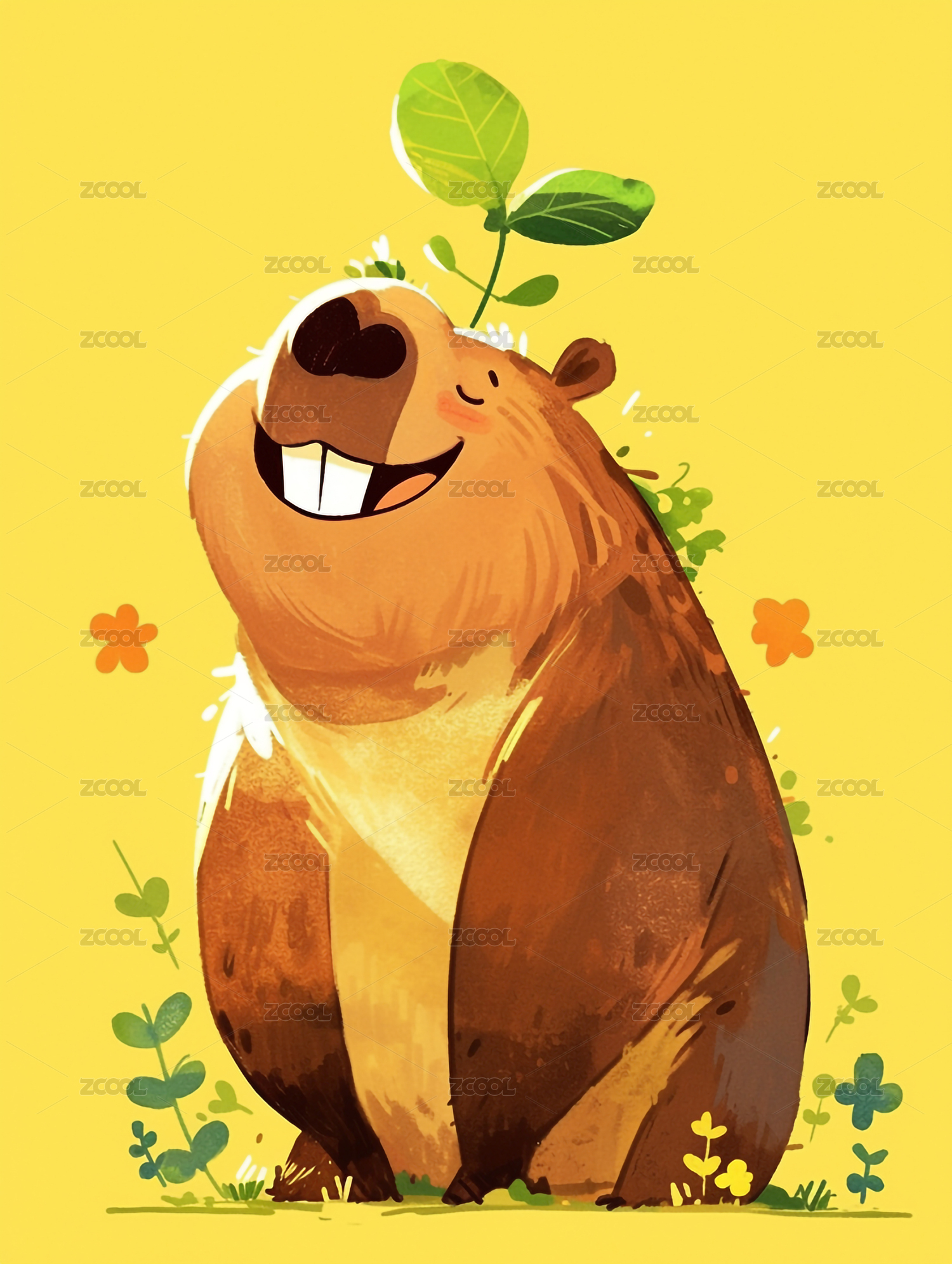 卡通动画可爱的水豚卡皮巴拉开心玩耍