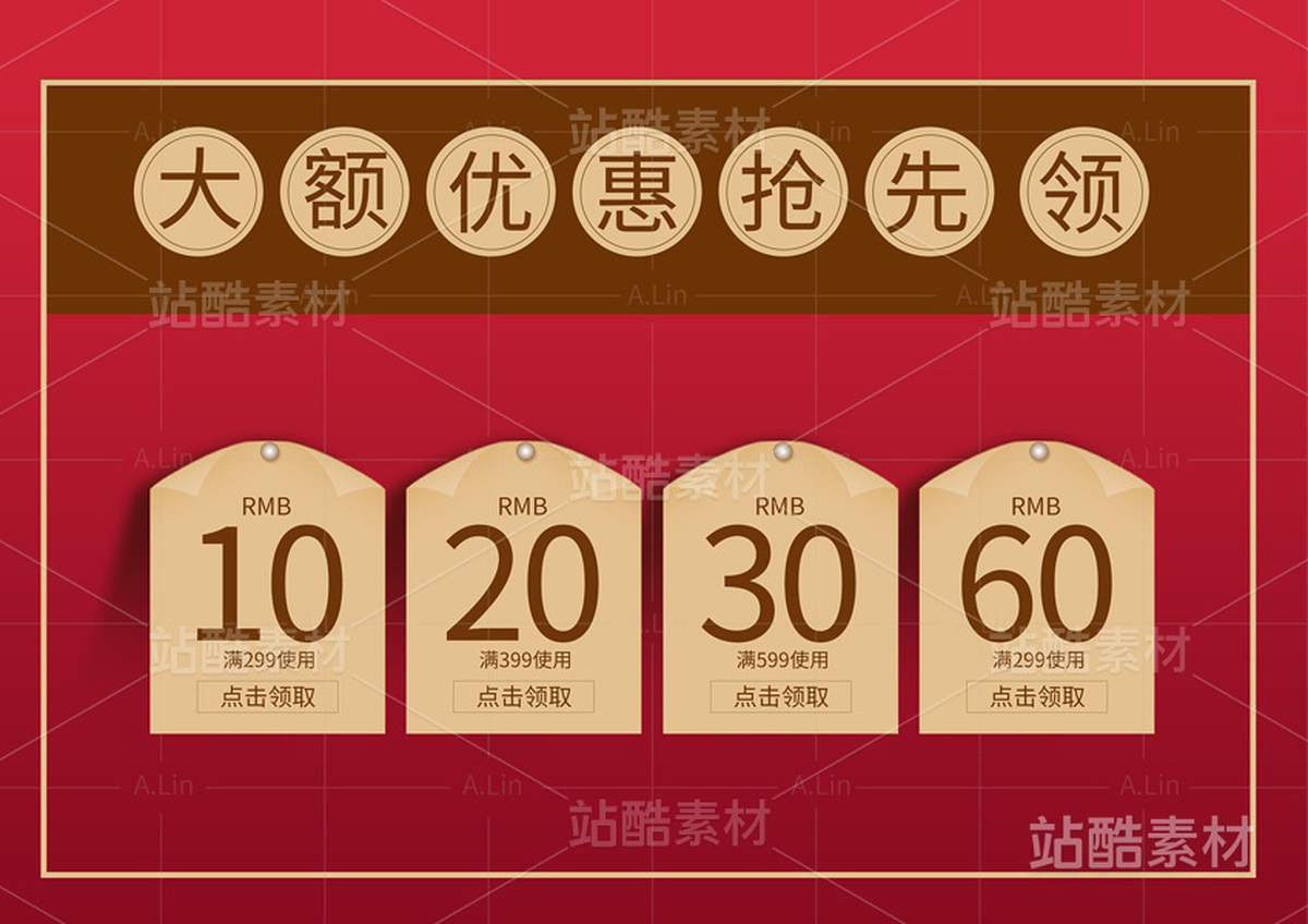 简洁大气电商活动优惠券 促销优惠券,文字可编辑,高清PSD分层文件……