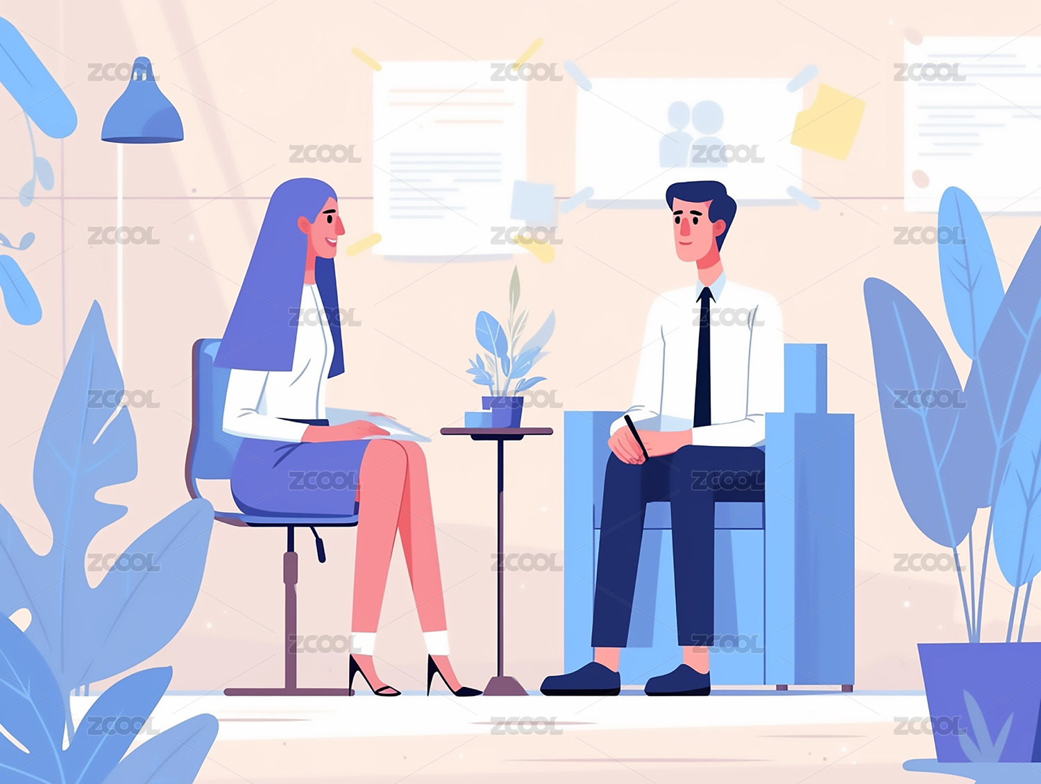 商务办公人物面试交谈沟通对话团队合作插画