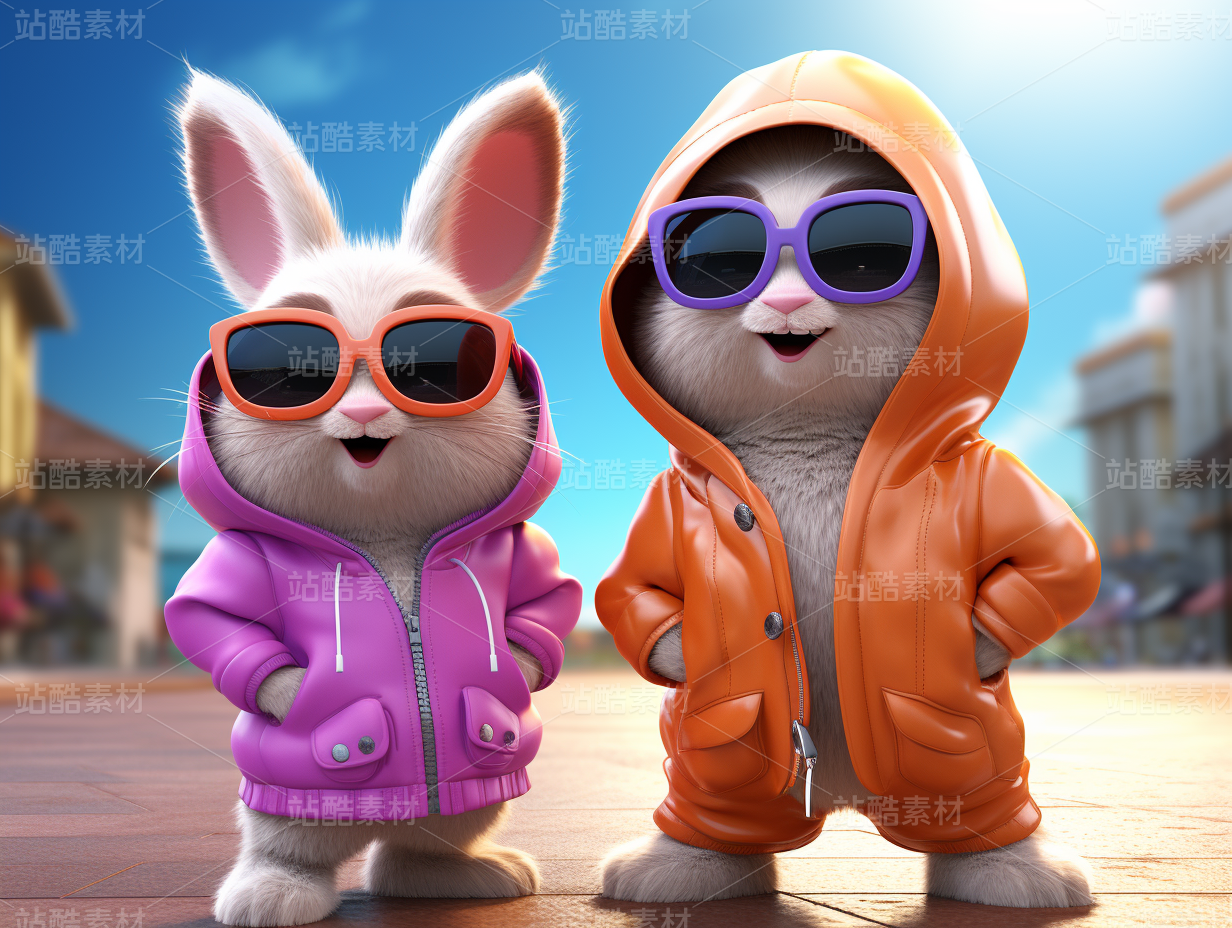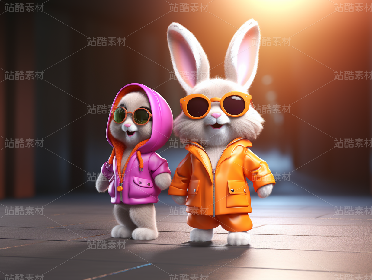 彩色3D卡通动物宠物兔子制服办公室橙色