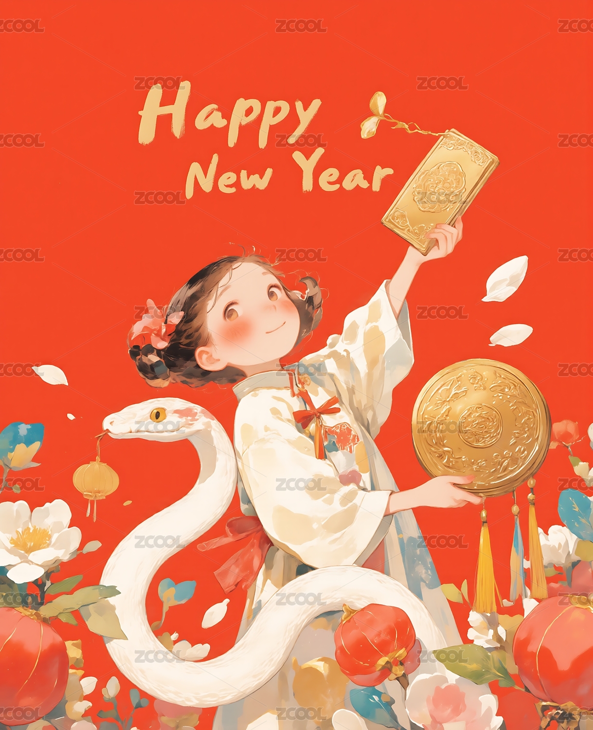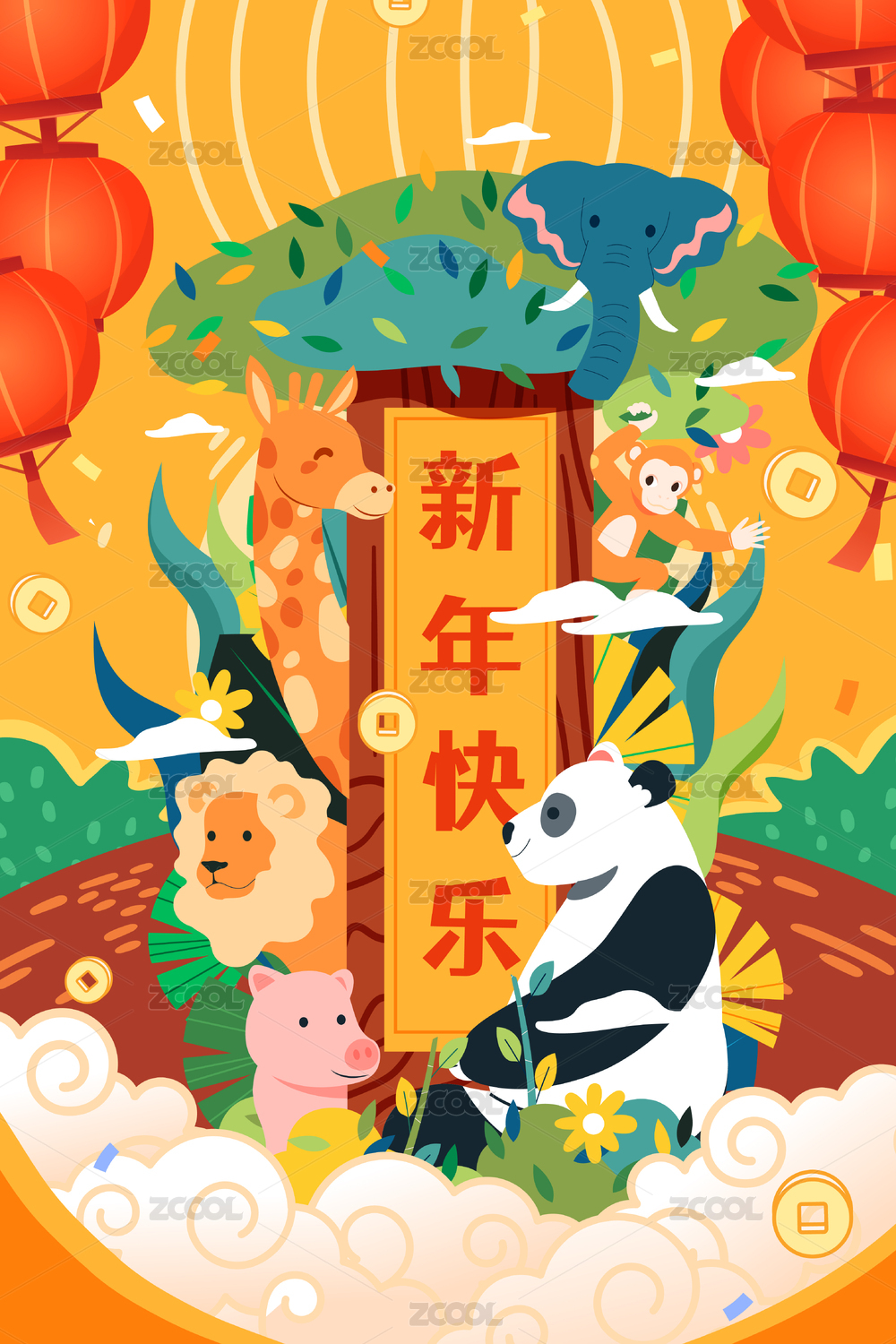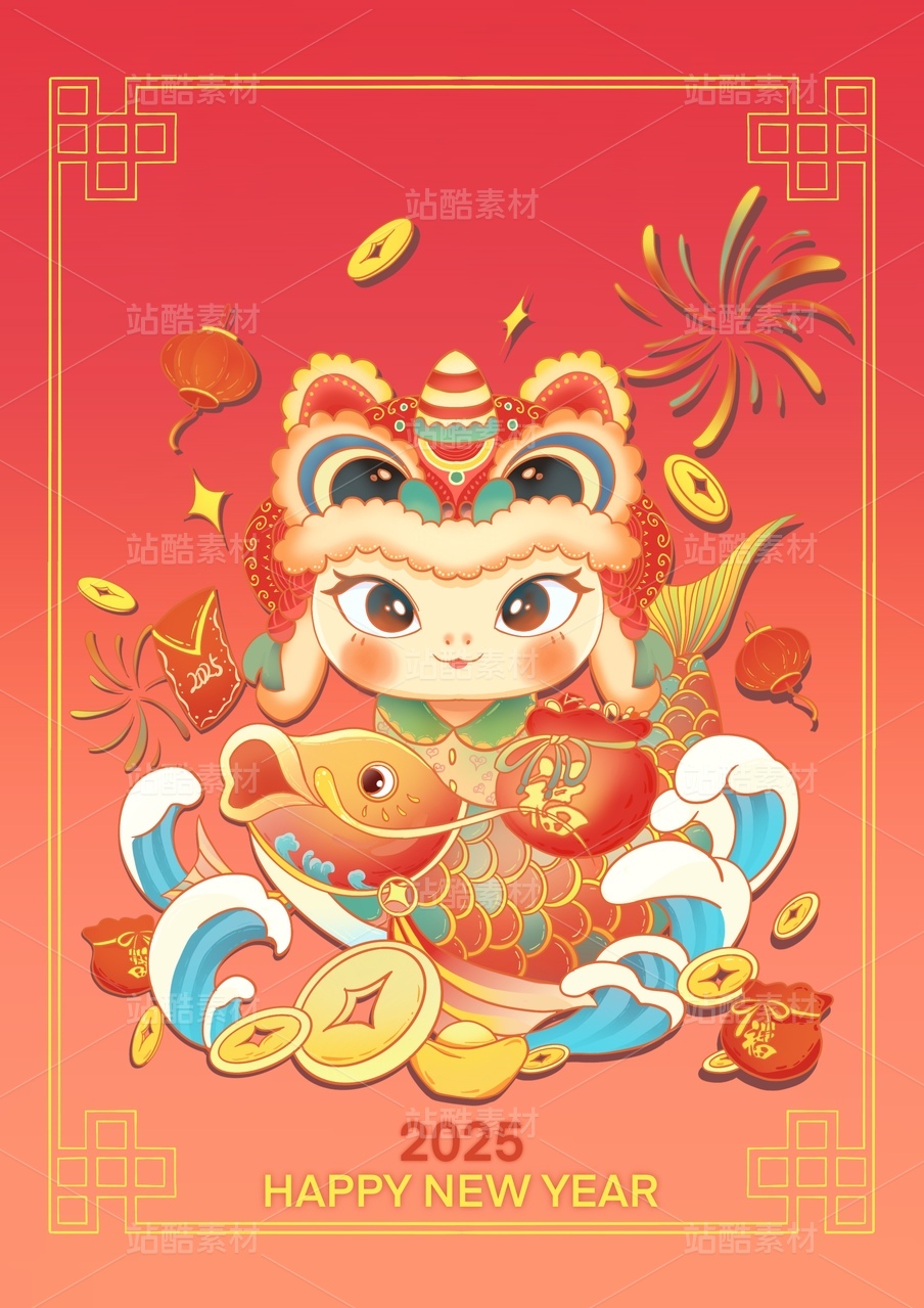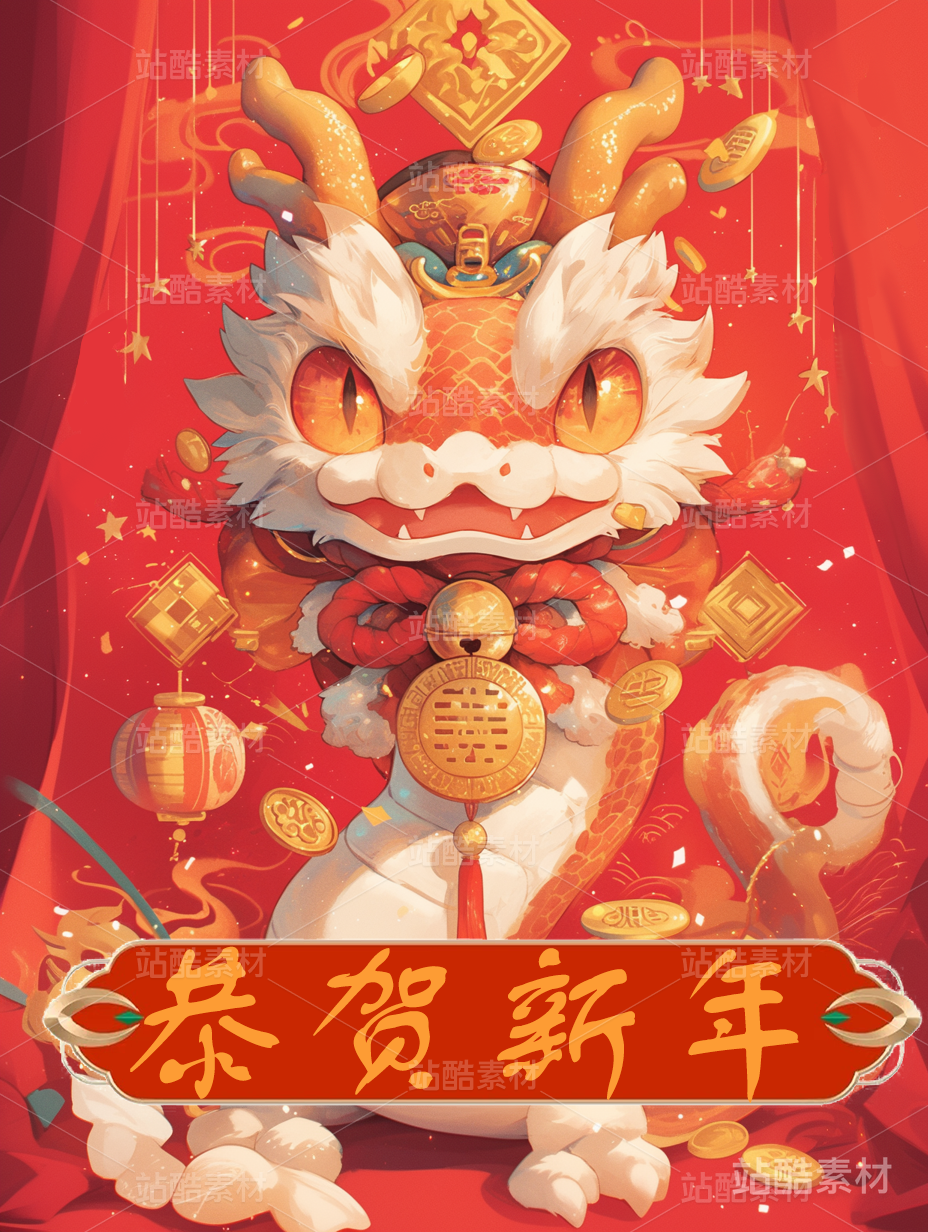 新年舞龙舞狮表演贺新春节日庆典插画海报