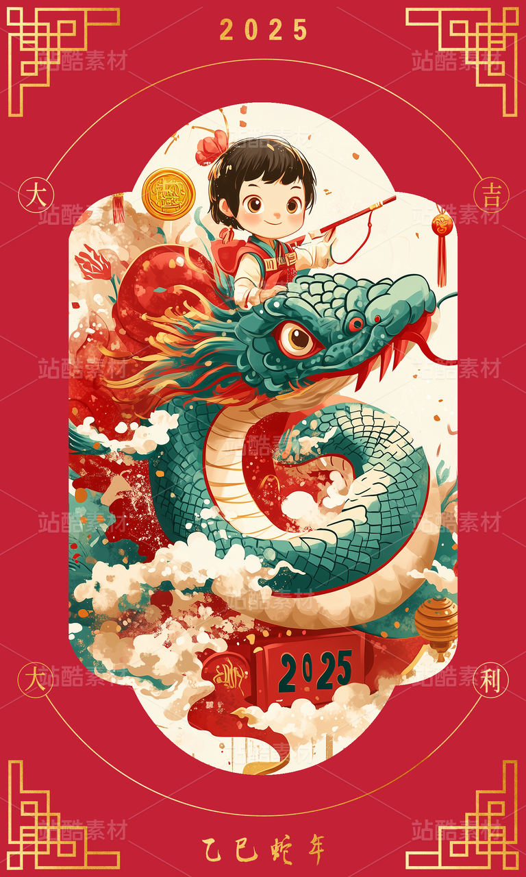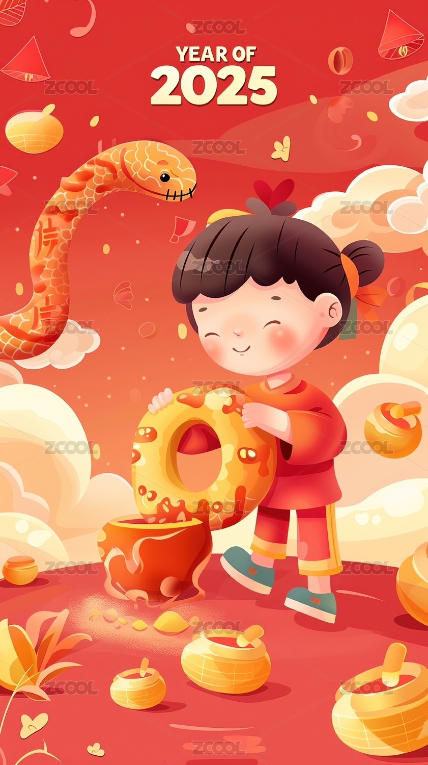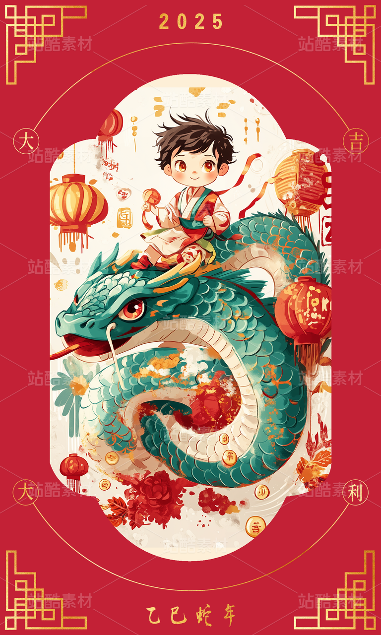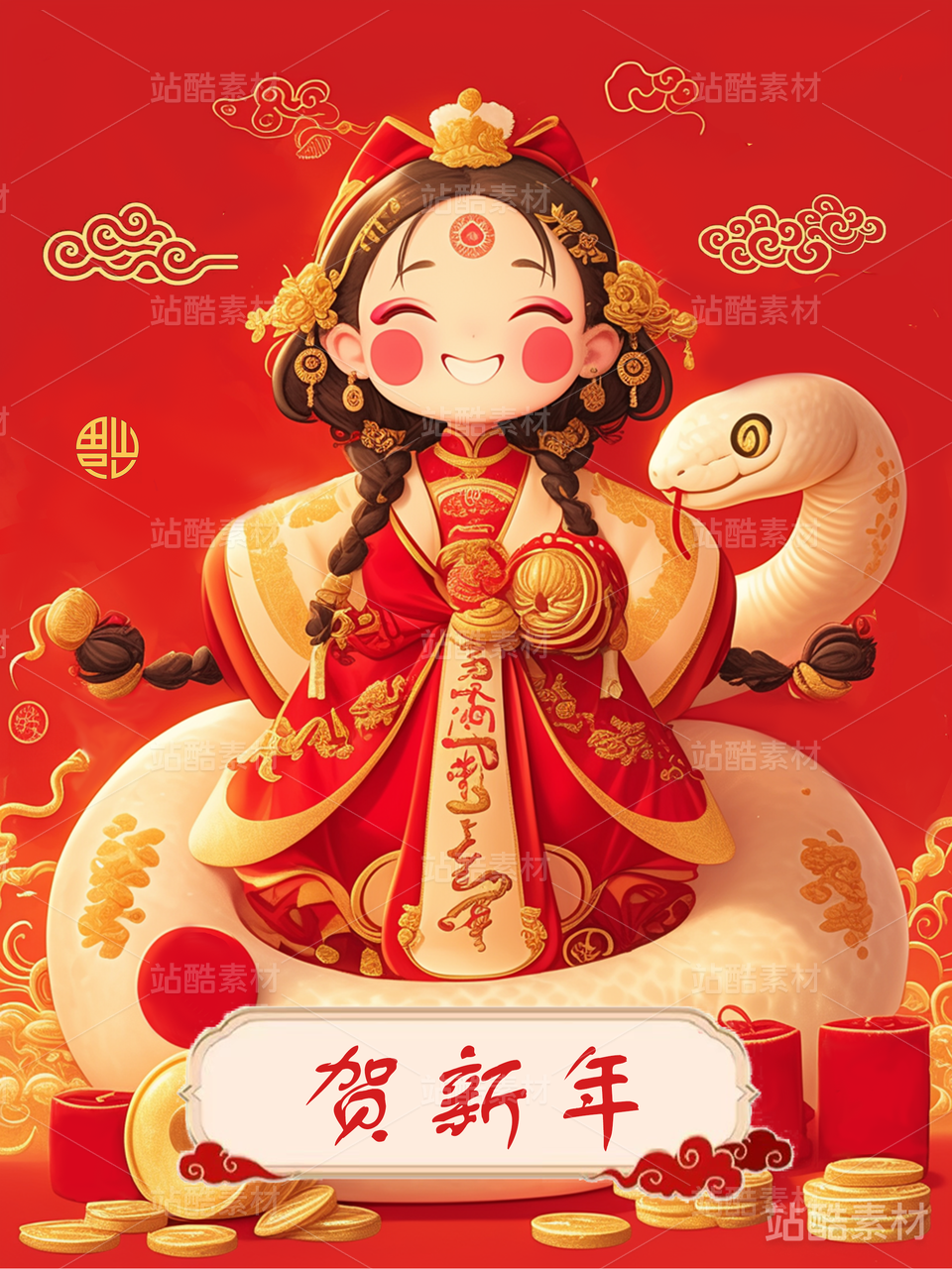 新年舞龙舞狮表演贺新春节日庆典插画海报
