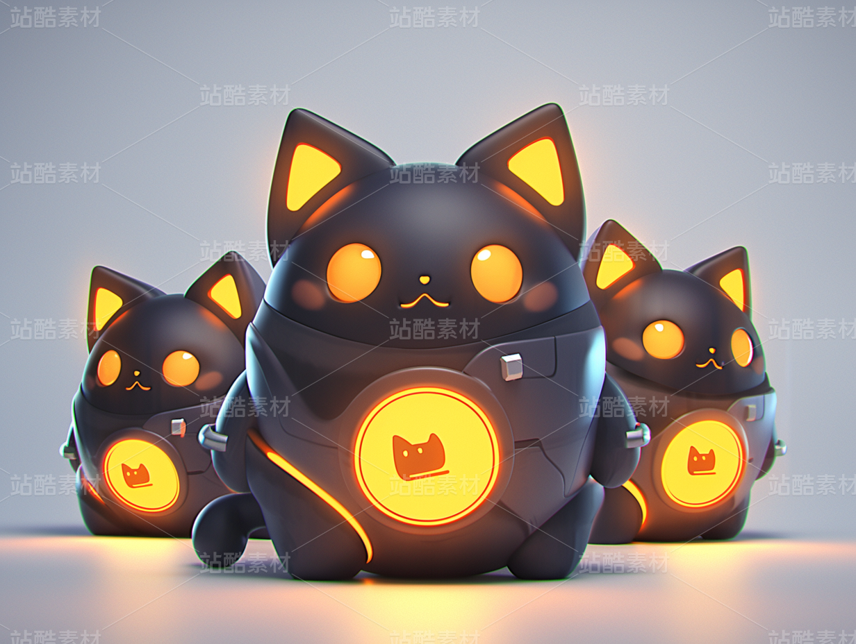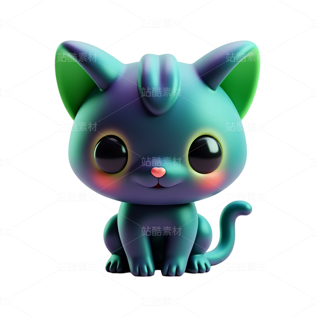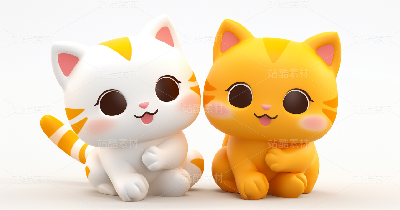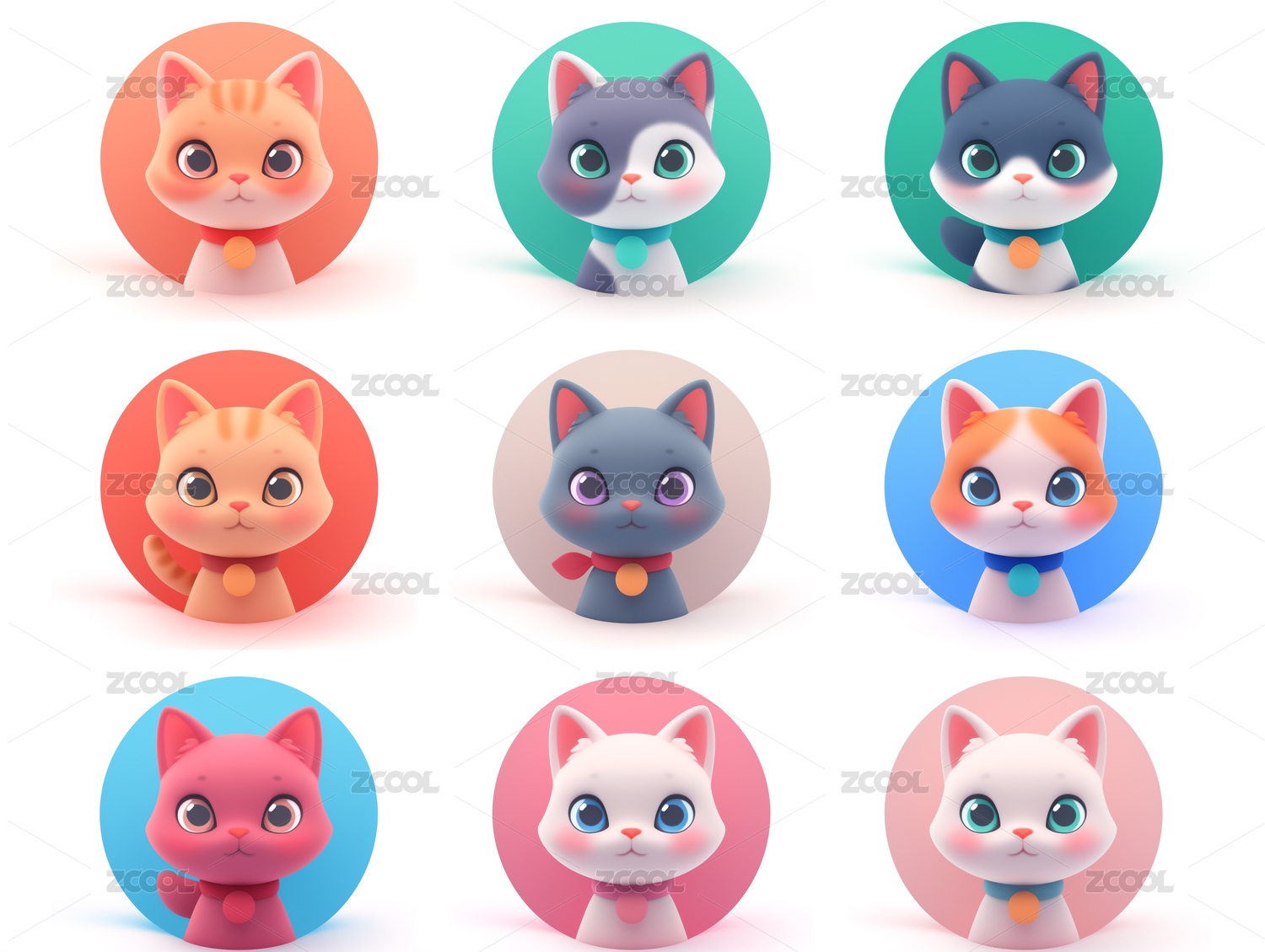 彩色蓝色橙色可爱猫猫猫头鹰宠物插画