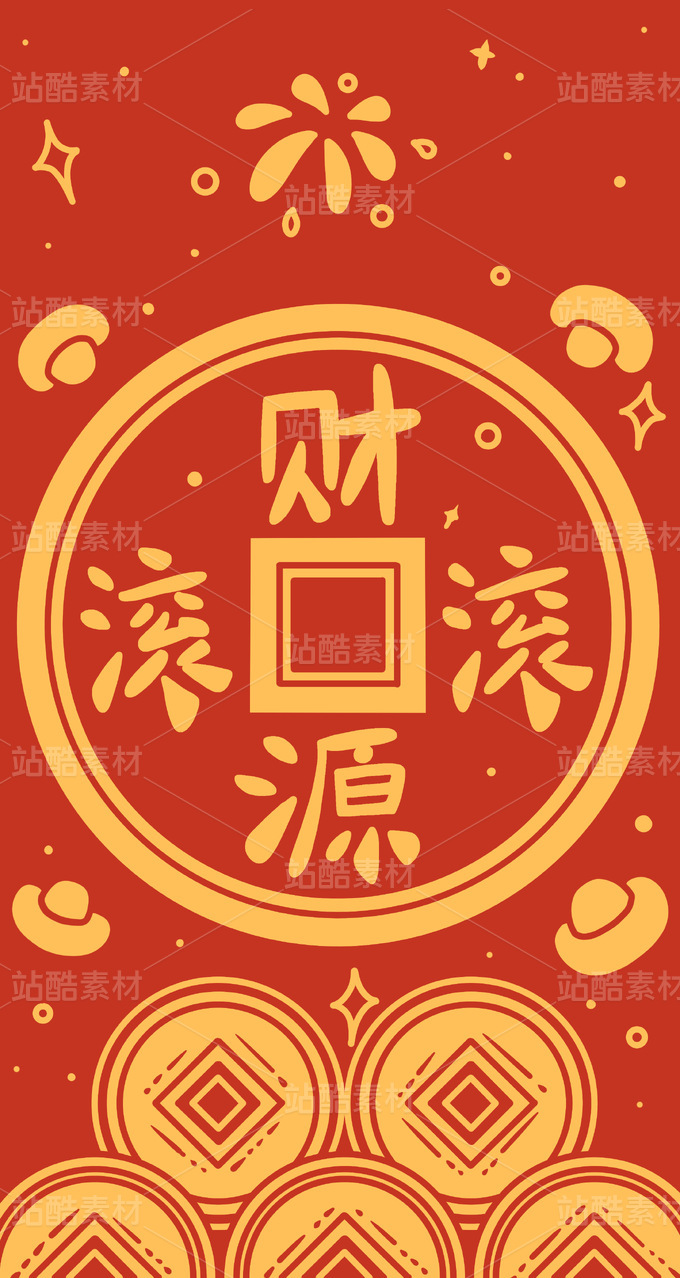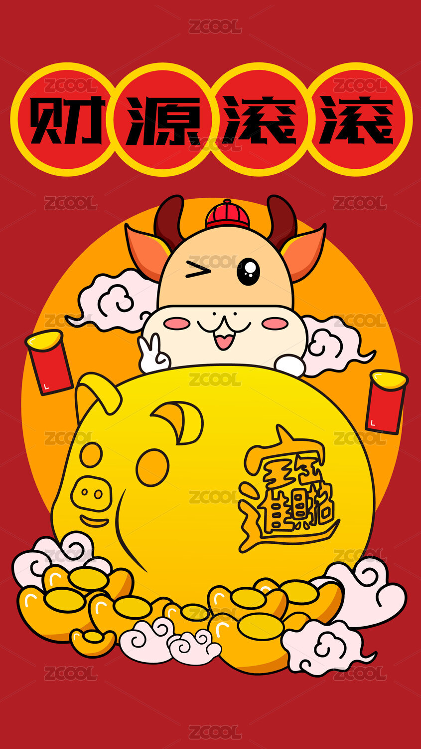 迎财神锦鲤开运牡丹花开春节矢量插画海报