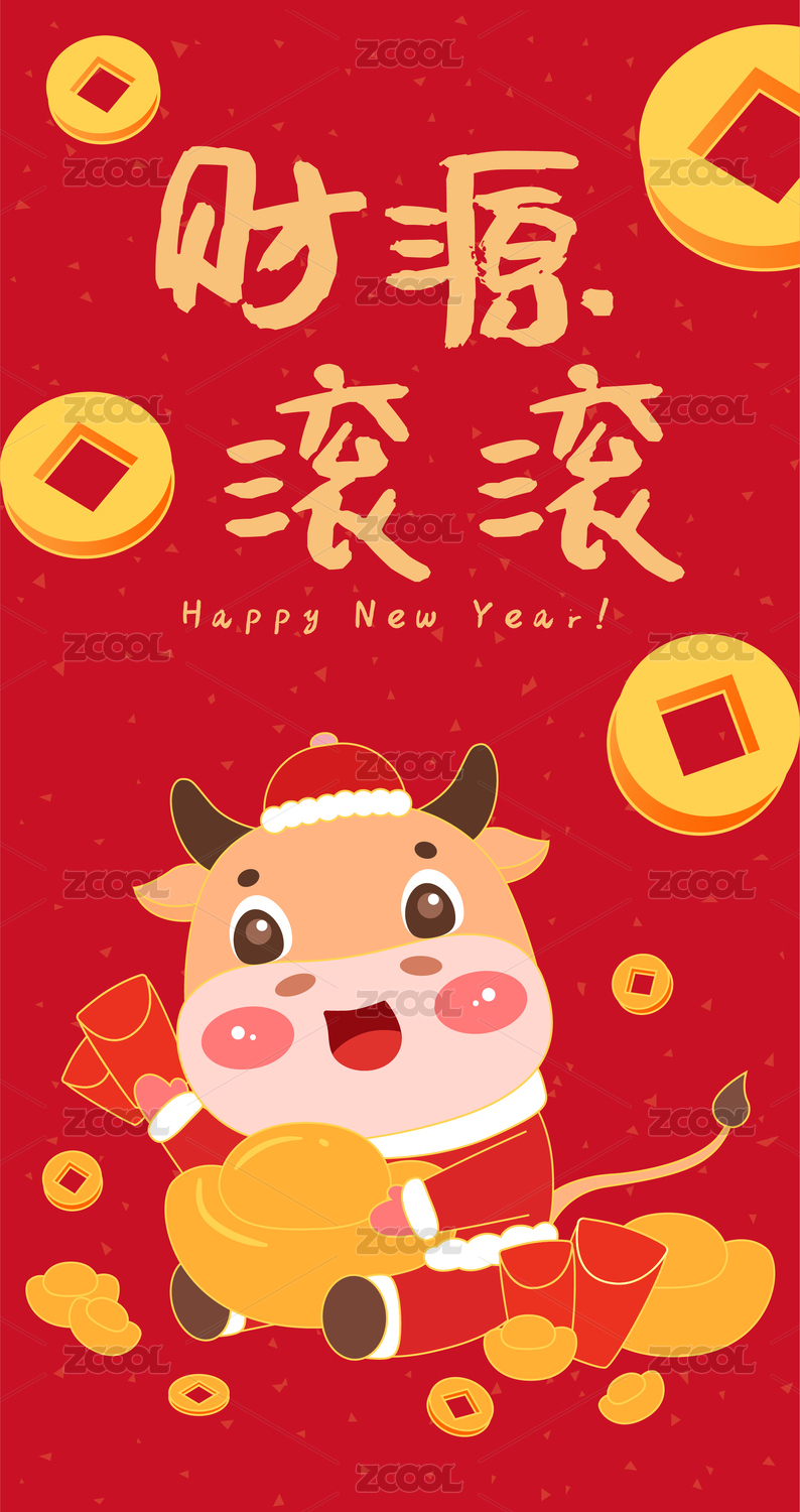 竖版红金色新年国风拜年手写书法祝福卷轴