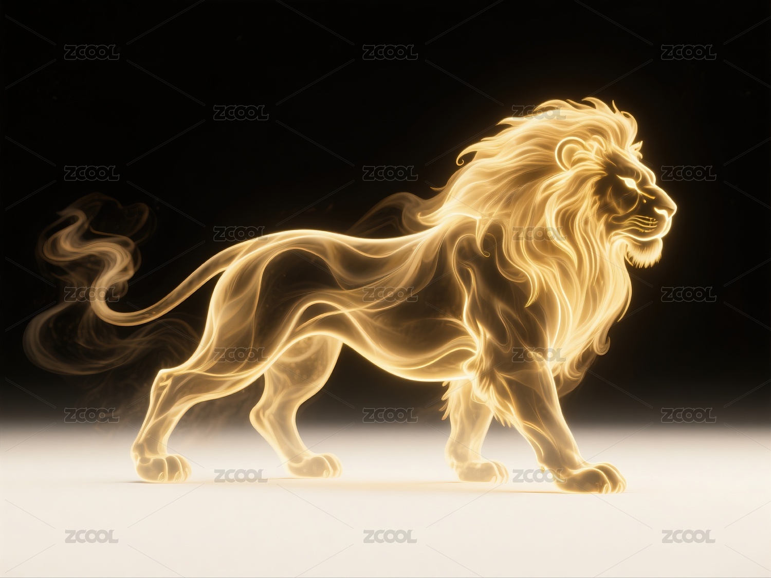 漂亮的高级金沙油漆质感艺术感狮子插画