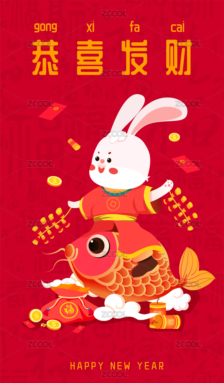 兔年招财进宝插画