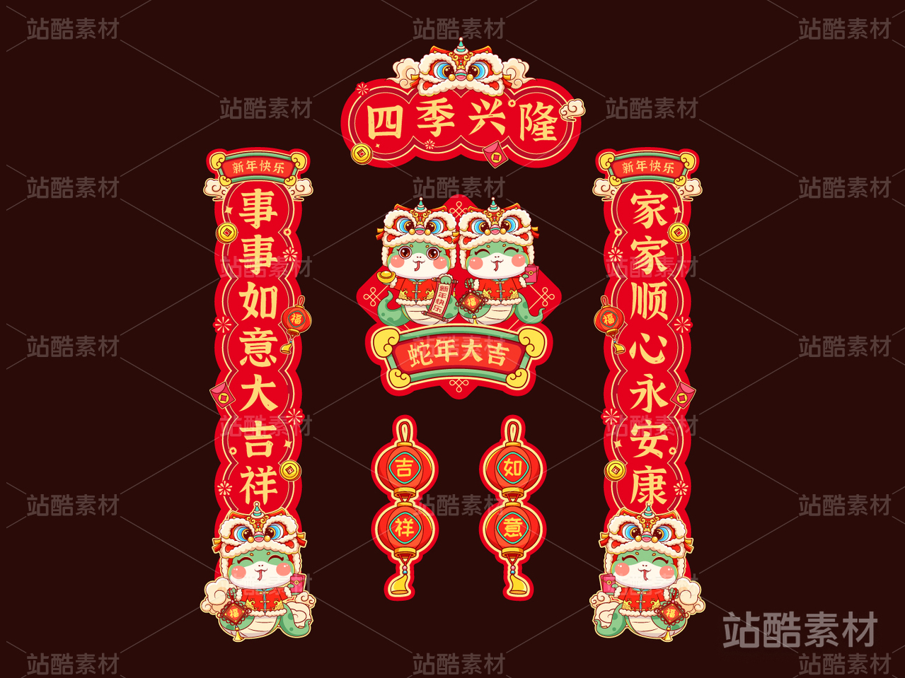 蛇年对联矢量模板