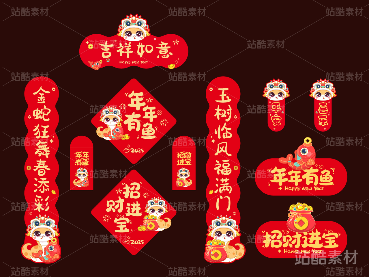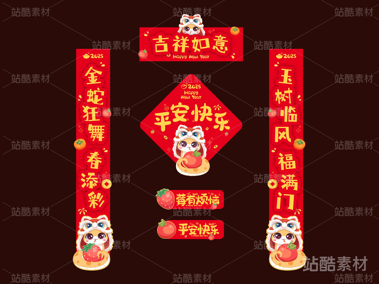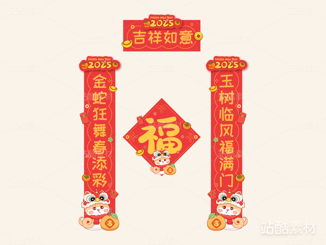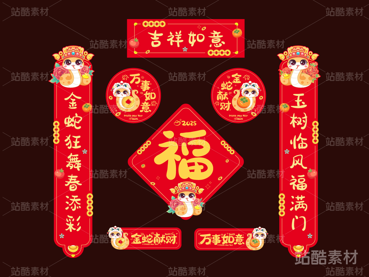 2025蛇年春节喜庆对联设计模板