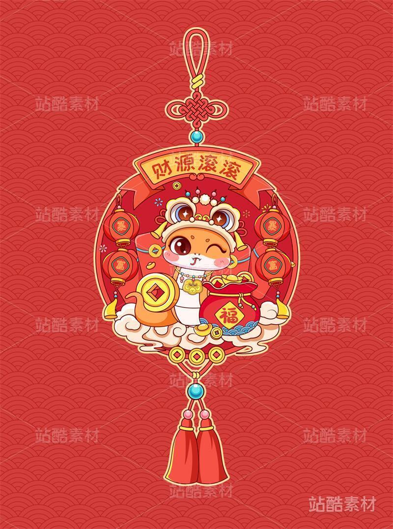 蛇年财源滚滚创意挂饰窗花矢量插画