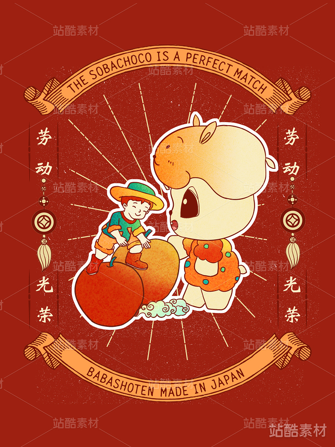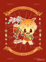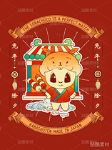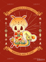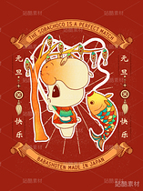生肖兔可爱门神国风插画