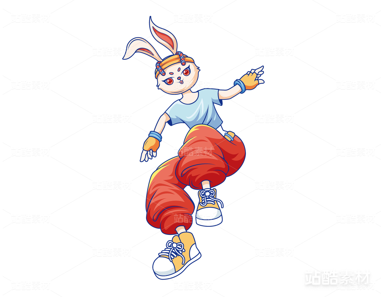 潮流兔子拟人透视角度插画