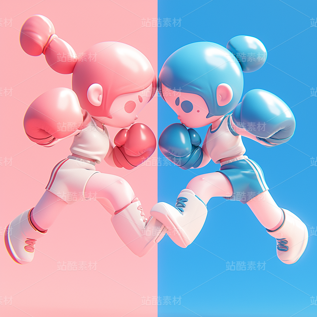 彩色3D卡通人物奔跑运动打拳击