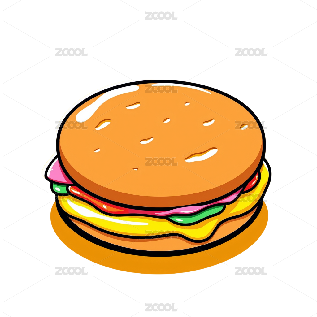 手绘卡通汉堡快餐食物矢量餐饮插画