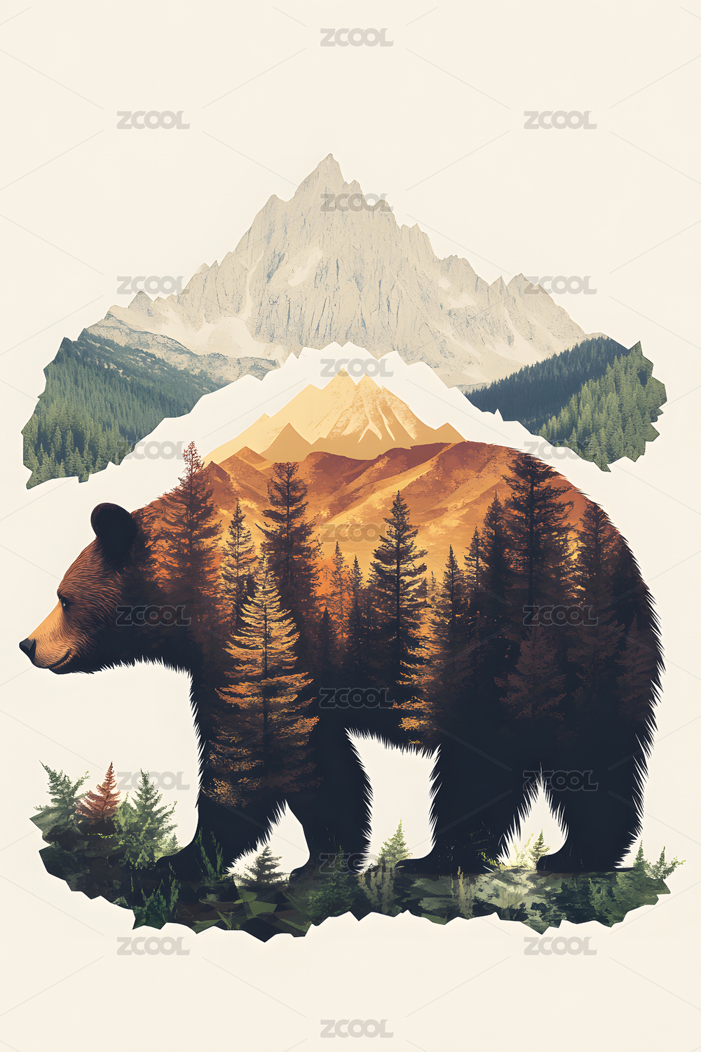 复古插画棕熊