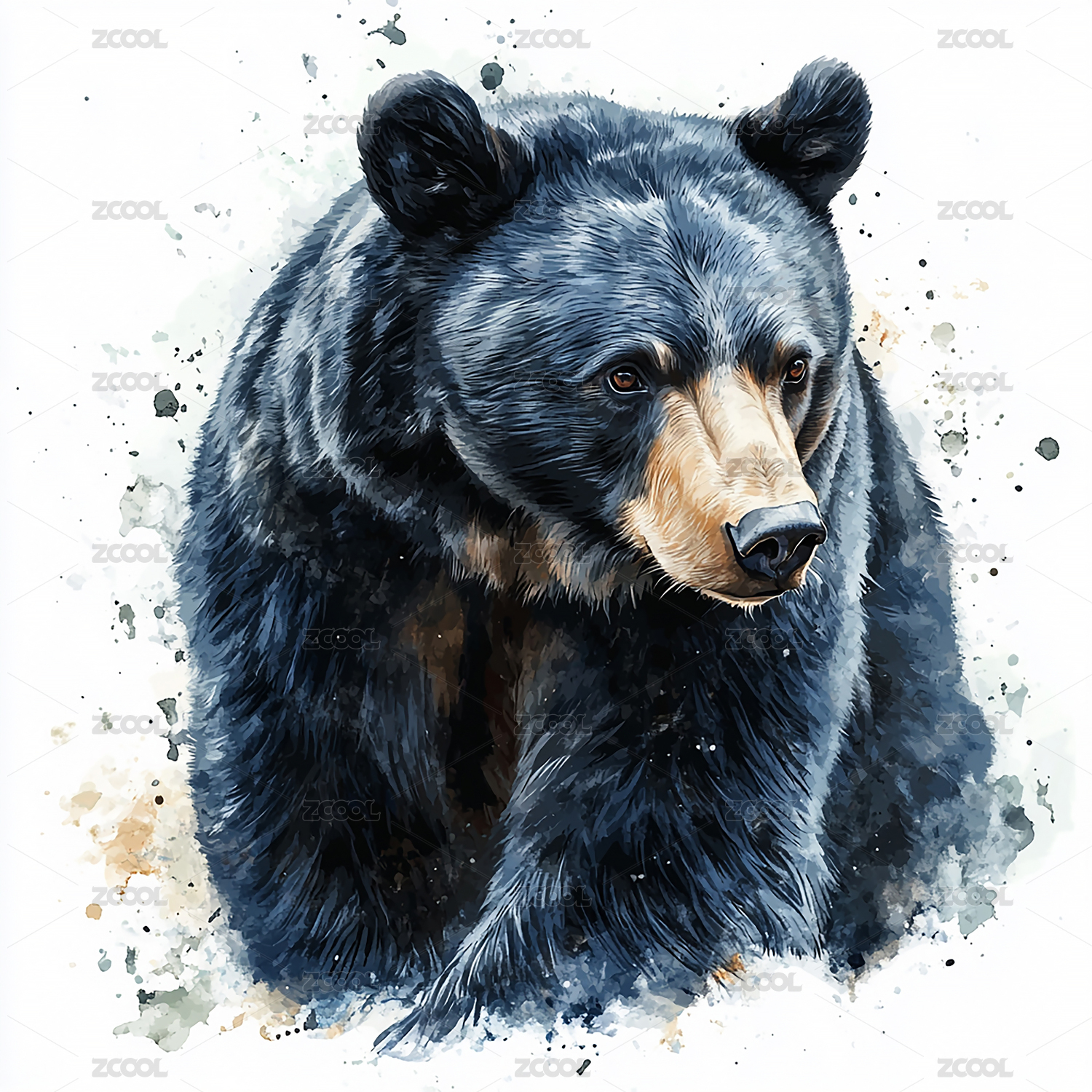 水彩动物黑熊插画