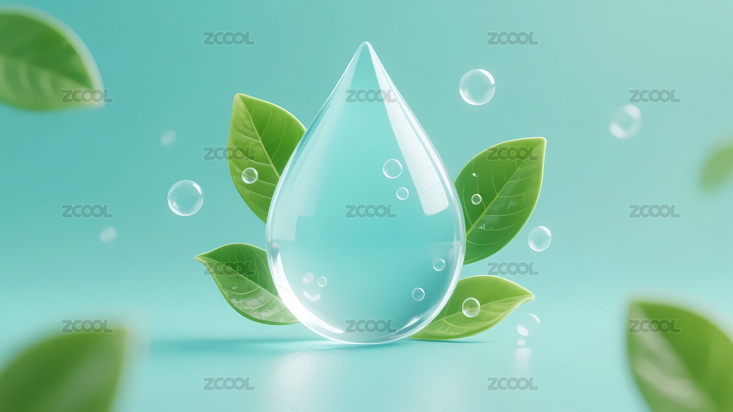 水滴里的绿色树叶,环境保护主题插画