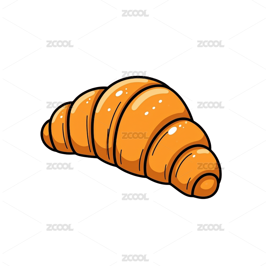 牛角包作为法式糕点的代表,其矢量插画可用于面包店、咖啡厅、西餐厅等餐饮场所的装饰。