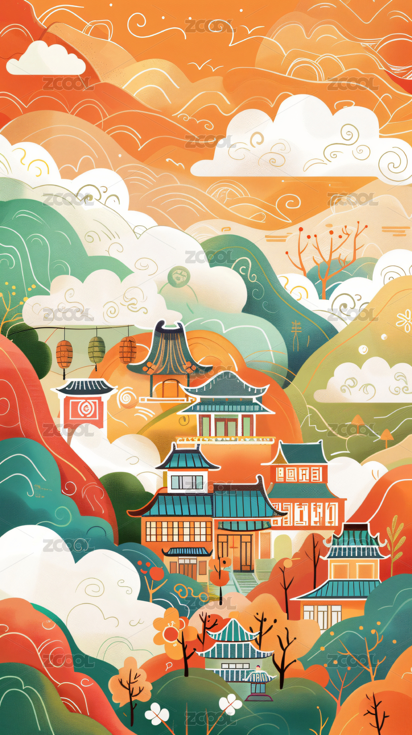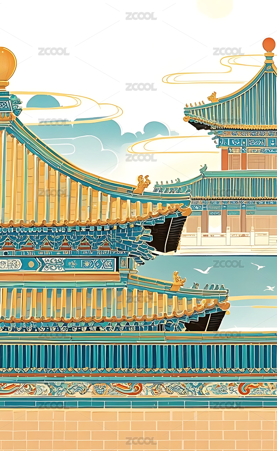 杭州西湖十景国潮矢量风景插画断桥残雪