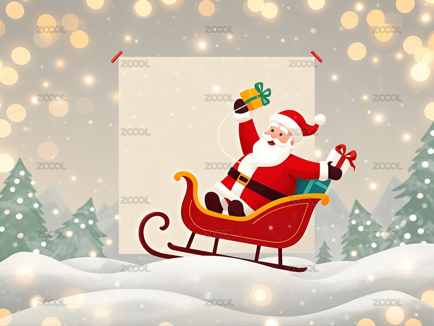 圣诞节圣诞老人骑着驼鹿送礼物海报插画