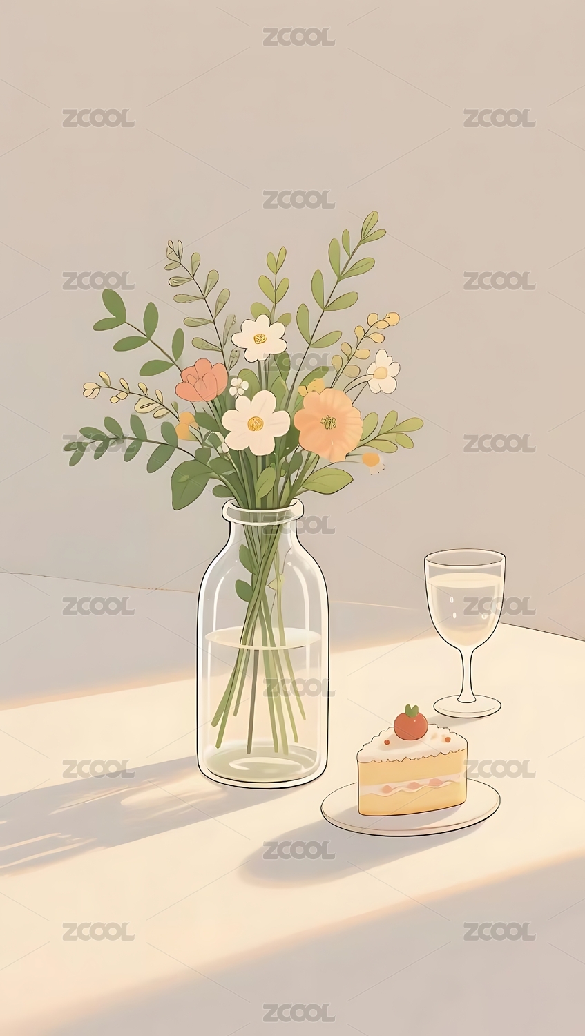 手绘免扣素材-茶杯,蛋糕,花瓶,面包,水果