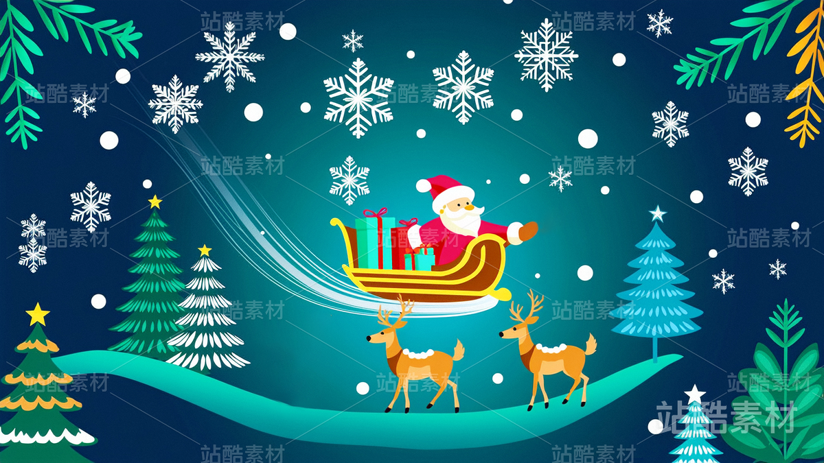 圣诞节圣诞老人骑着驼鹿送礼物海报插画