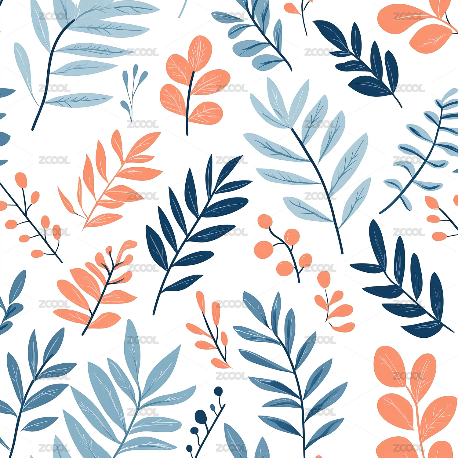 夏天彩色蕨类植物叶子四方连续循环无缝拼贴