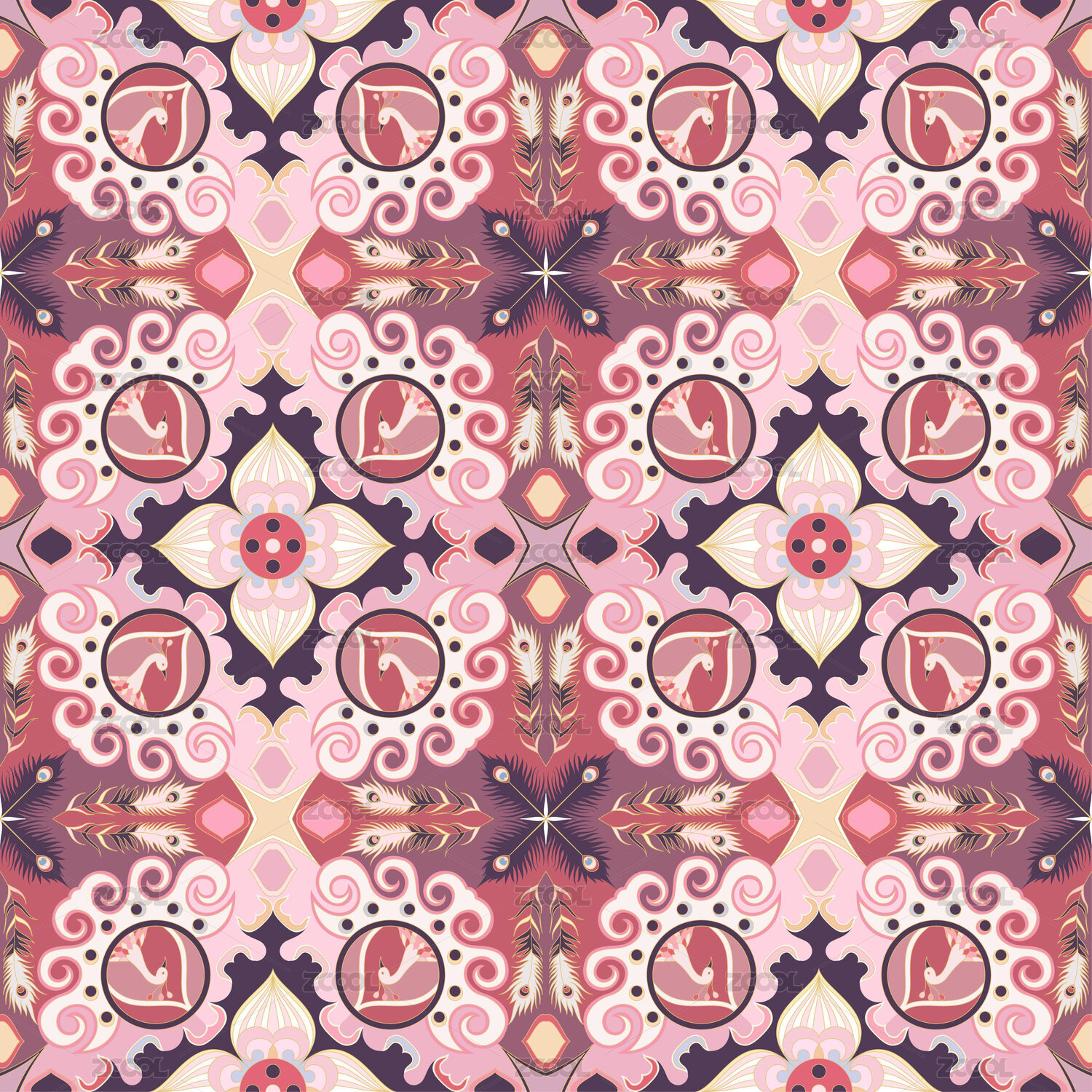 粉红色系中国风 名族风 孔雀莲花图案纹样